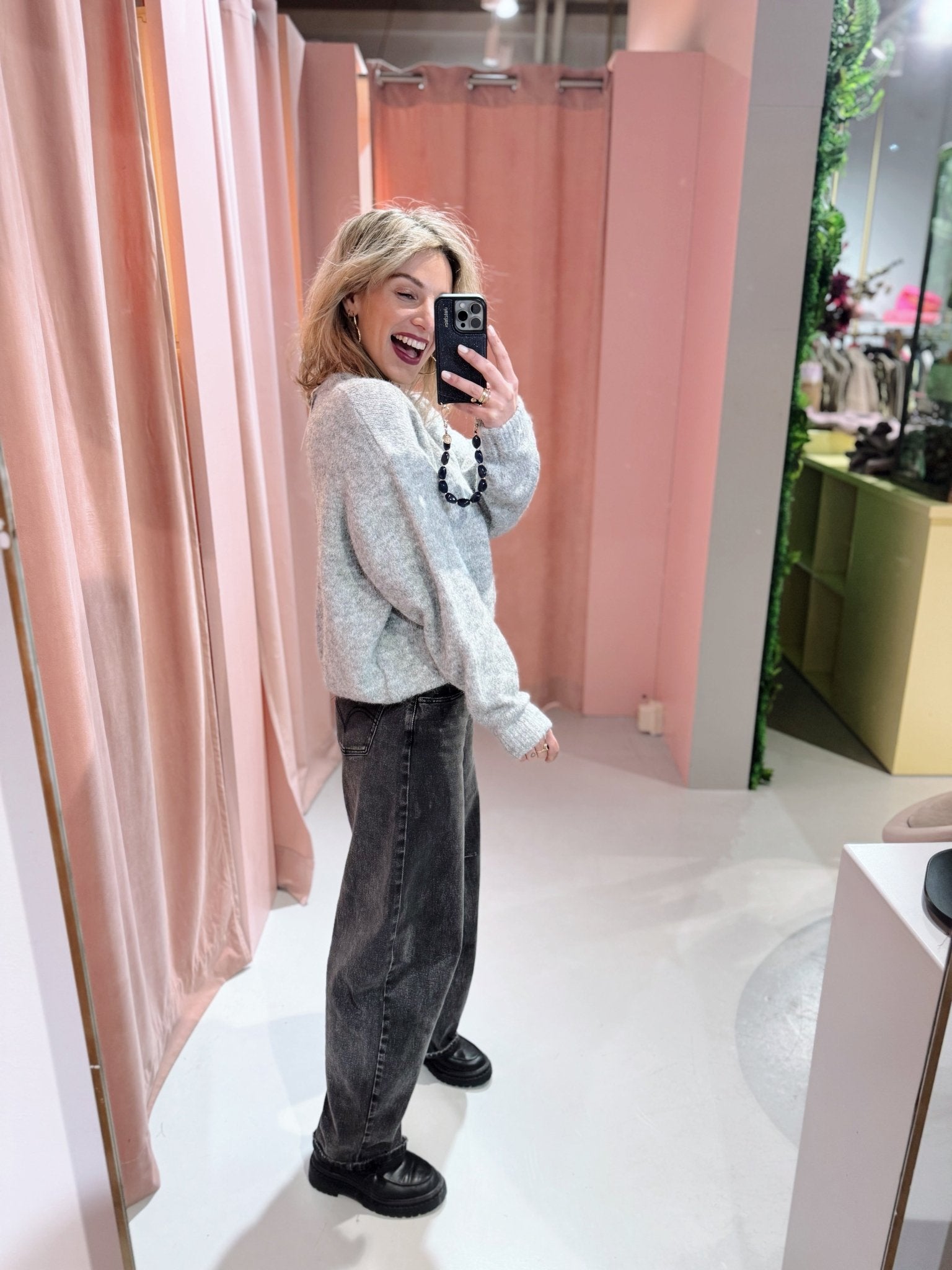Jessica is 1,65m lang en draagt altijd maat S of S/M.