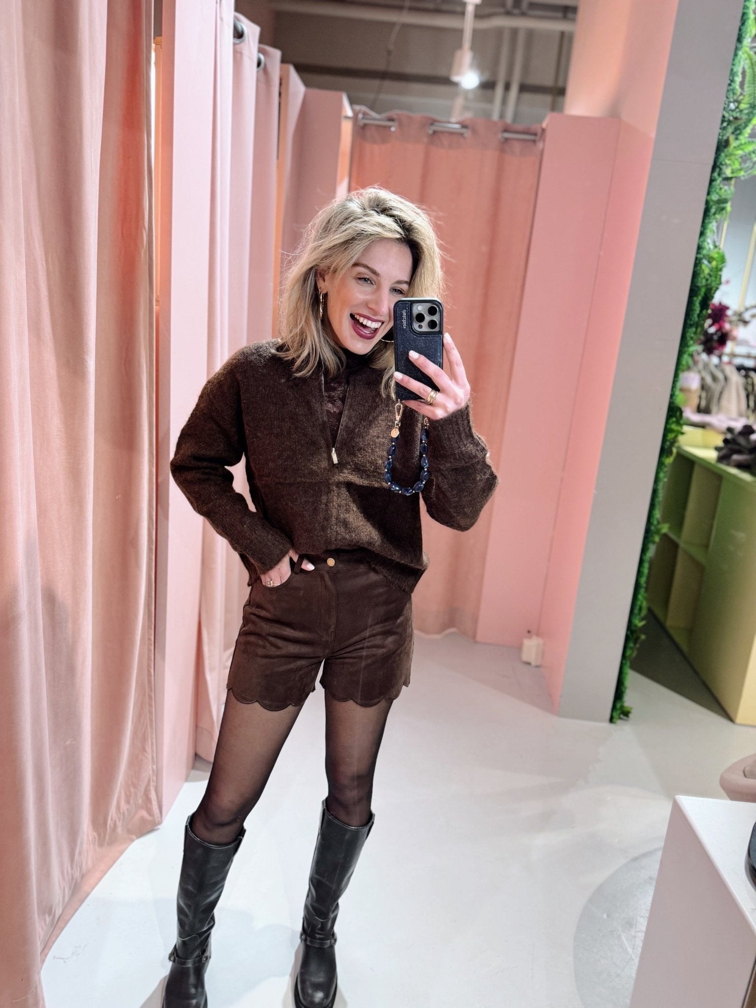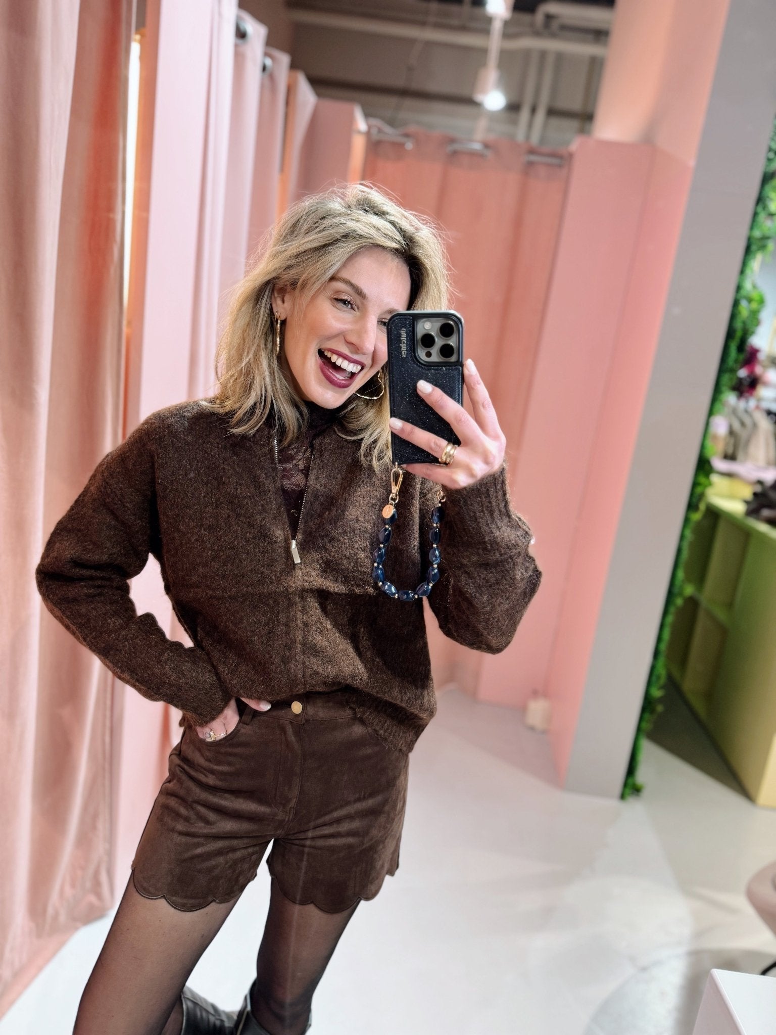 De Omelia Cardigan in bruin is gemaakt van een gebreid materiaal, waardoor hij heerlijk warm is! Het vestje heeft lange mouwen, een ronde halslijn en is afgewerkt met een ritssluiting aan de voorkant.