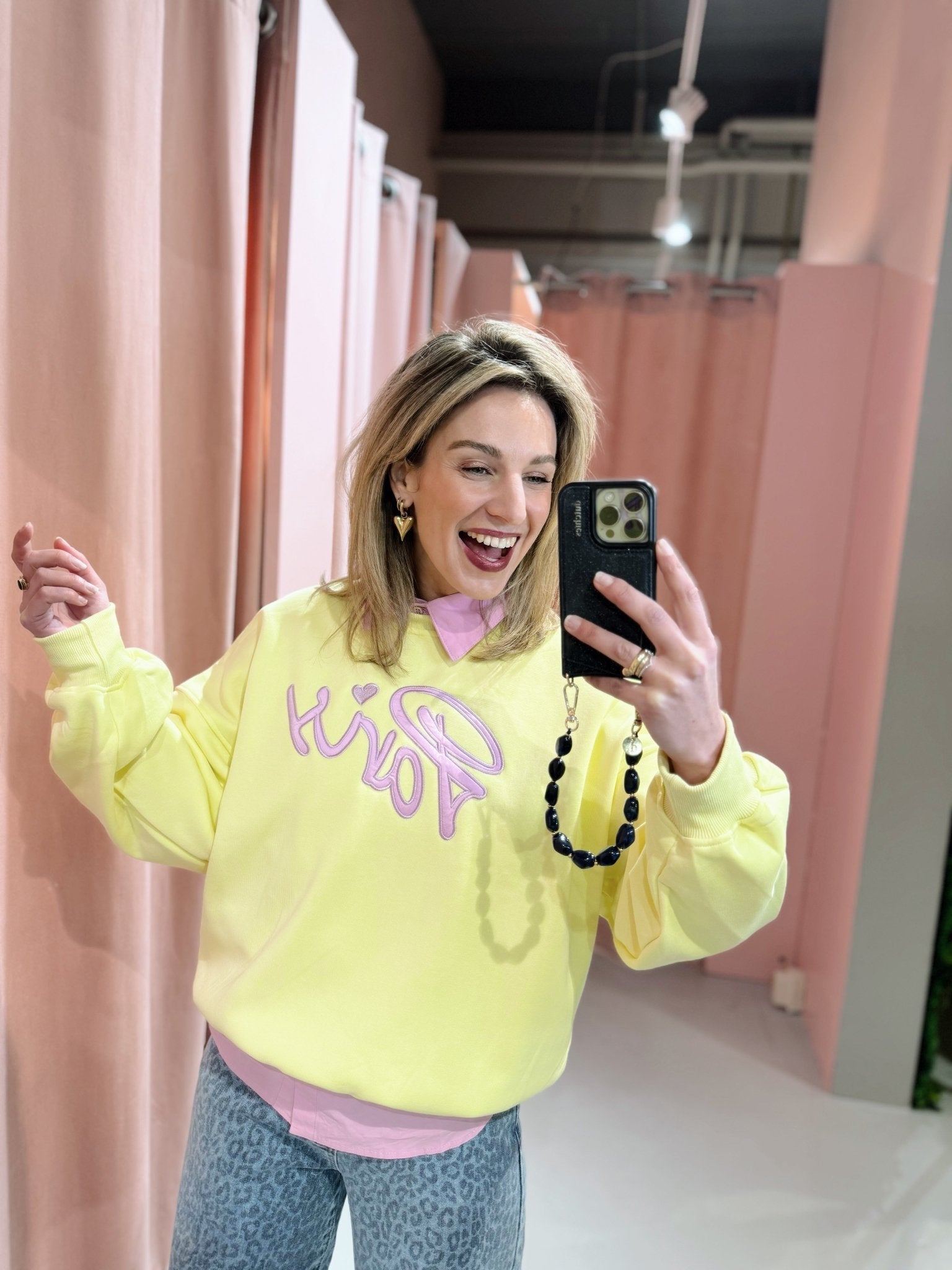 Jessica is 1,65m lang en draagt altijd maat S of S/M.
