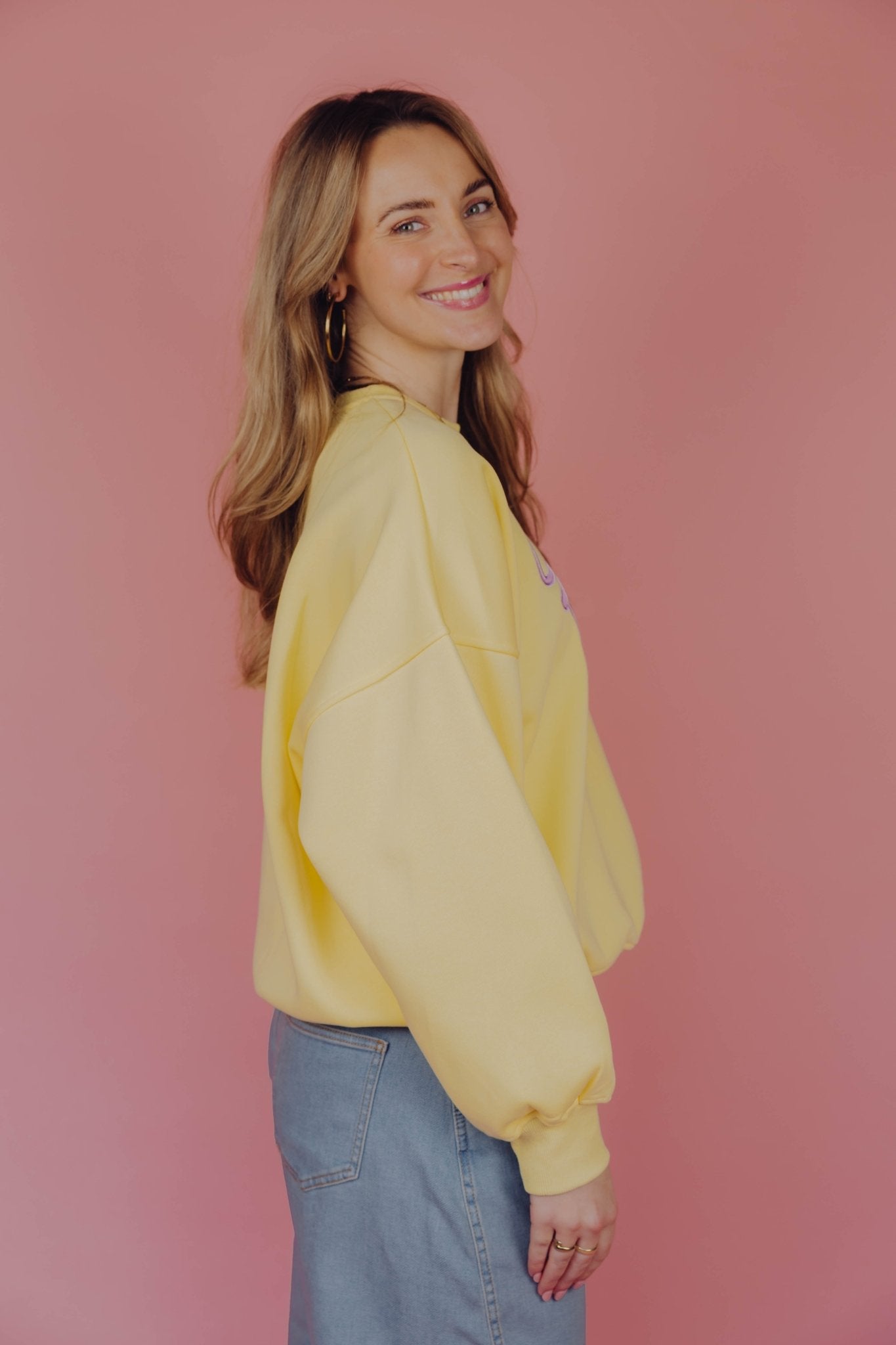 De Paris Sweater in geel is een oversized trui met lange mouwen en een ronde halslijn. De trui heeft een losse pasvorm en is voorzien van een opdruk met de tekst "Paris" op de borst. Doordat deze sweater voorzien is van een fleece binnenkant, is hij perfect voor de koude dagen!