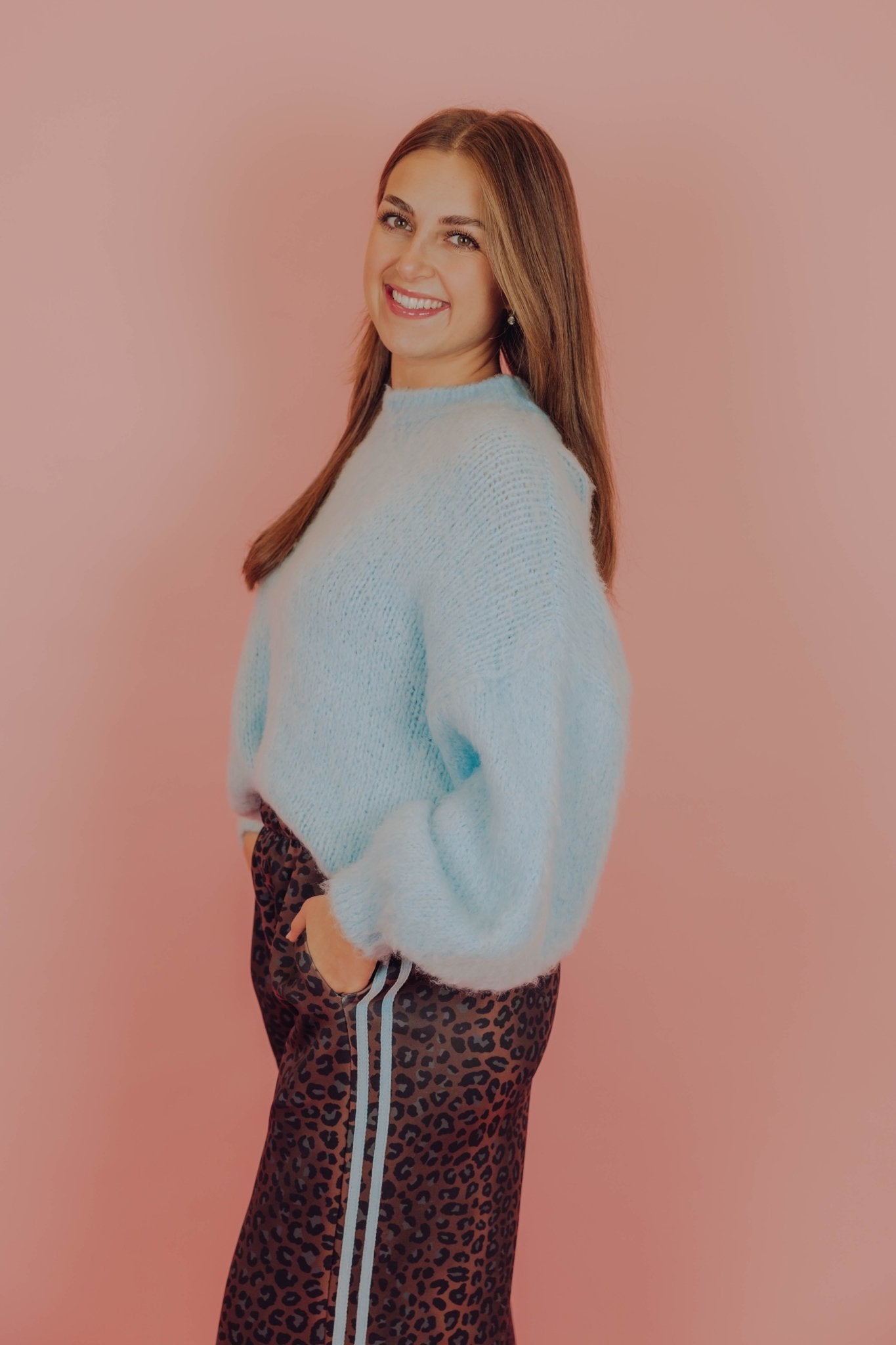 De Pixie Knit in lichtblauw is een zachte, pluizige knit met een mohair look en een oversized fit. De trui is gemaakt van een heerlijk warm gebreid materiaal, heeft lange mouwen en een ronde hals. Door het losse model draagt hij heerlijk comfortabel en valt hij mooi nonchalant. De paarse kleur maakt deze knit een echte pop of color en geeft elke outfit meteen een vrolijke, opvallende touch.