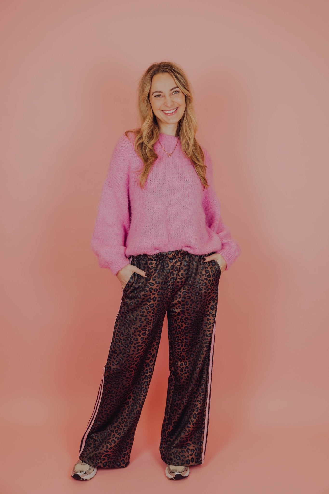 De Pixie Knit in roze is een zachte knit met een oversized fit. De trui is gemaakt van een heerlijk warm gebreid materiaal en heeft lange mouwen en een ronde hals. Door het oversized model valt hij lekker los en draagt hij comfortabel. De roze kleur maakt deze knit een echte pop of color en perfect om je outfit net wat extra’s te geven.
