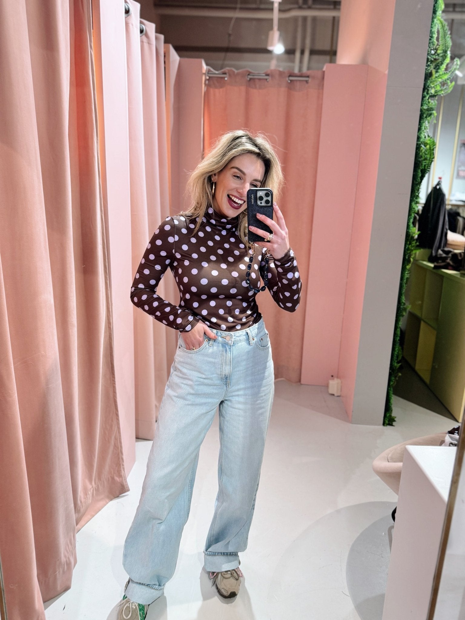 Jessica is 1,65m lang en draagt altijd maat S of S/M.