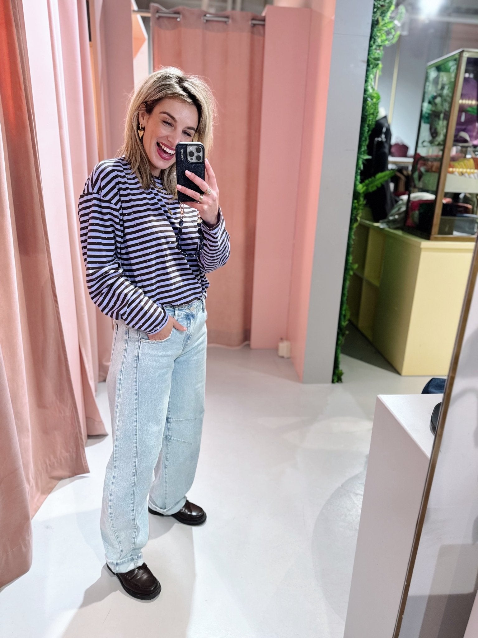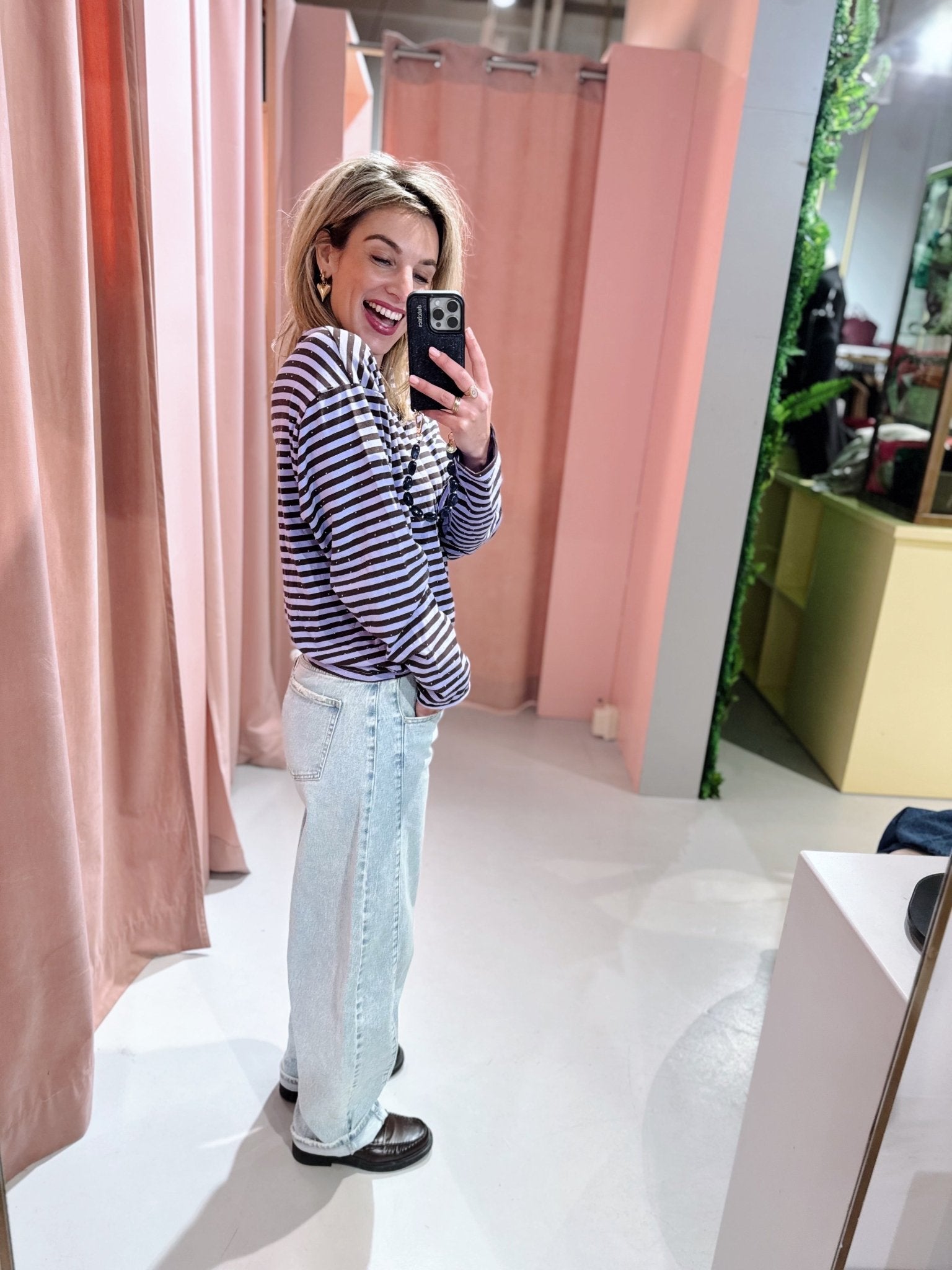 Jessica is 1,65m lang en draagt altijd maat S of S/M.