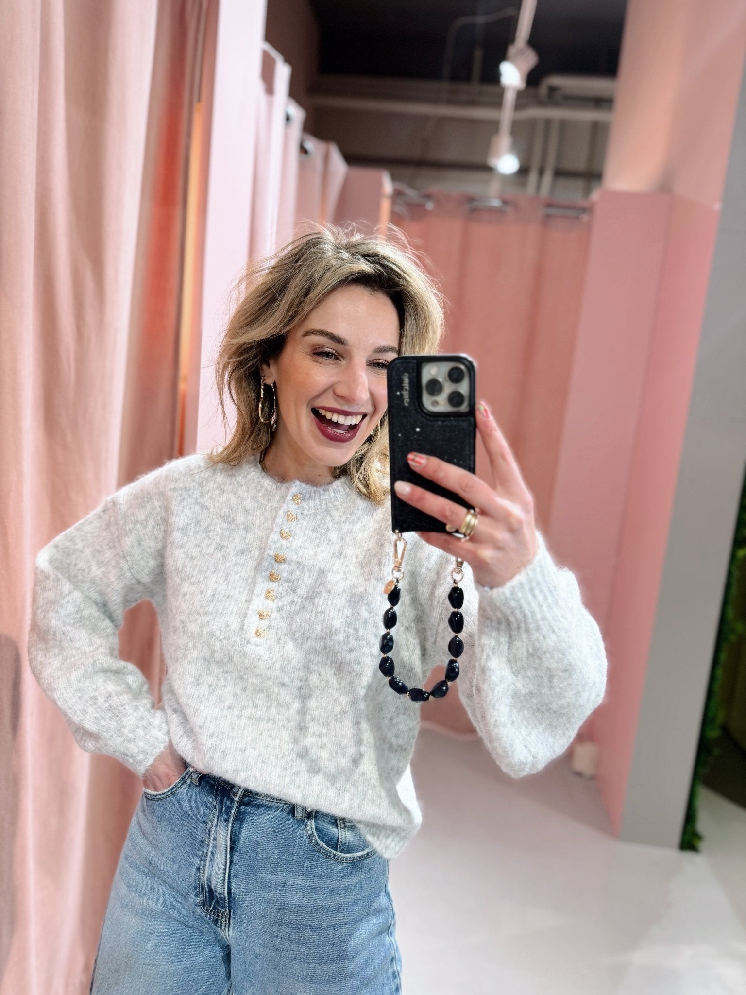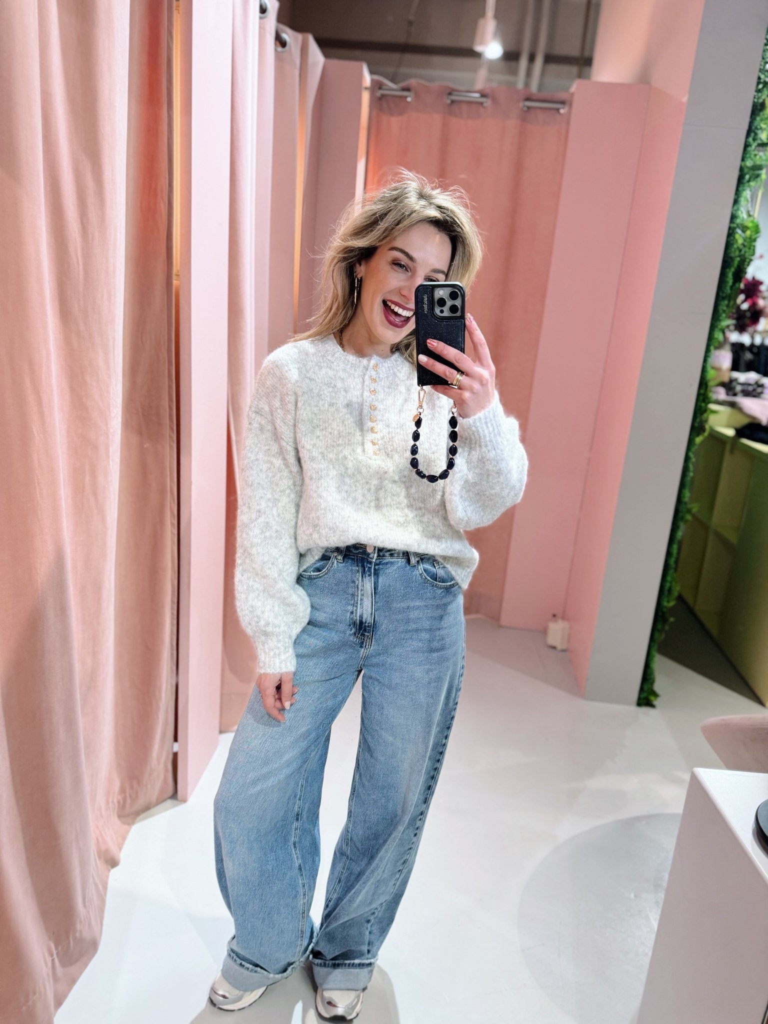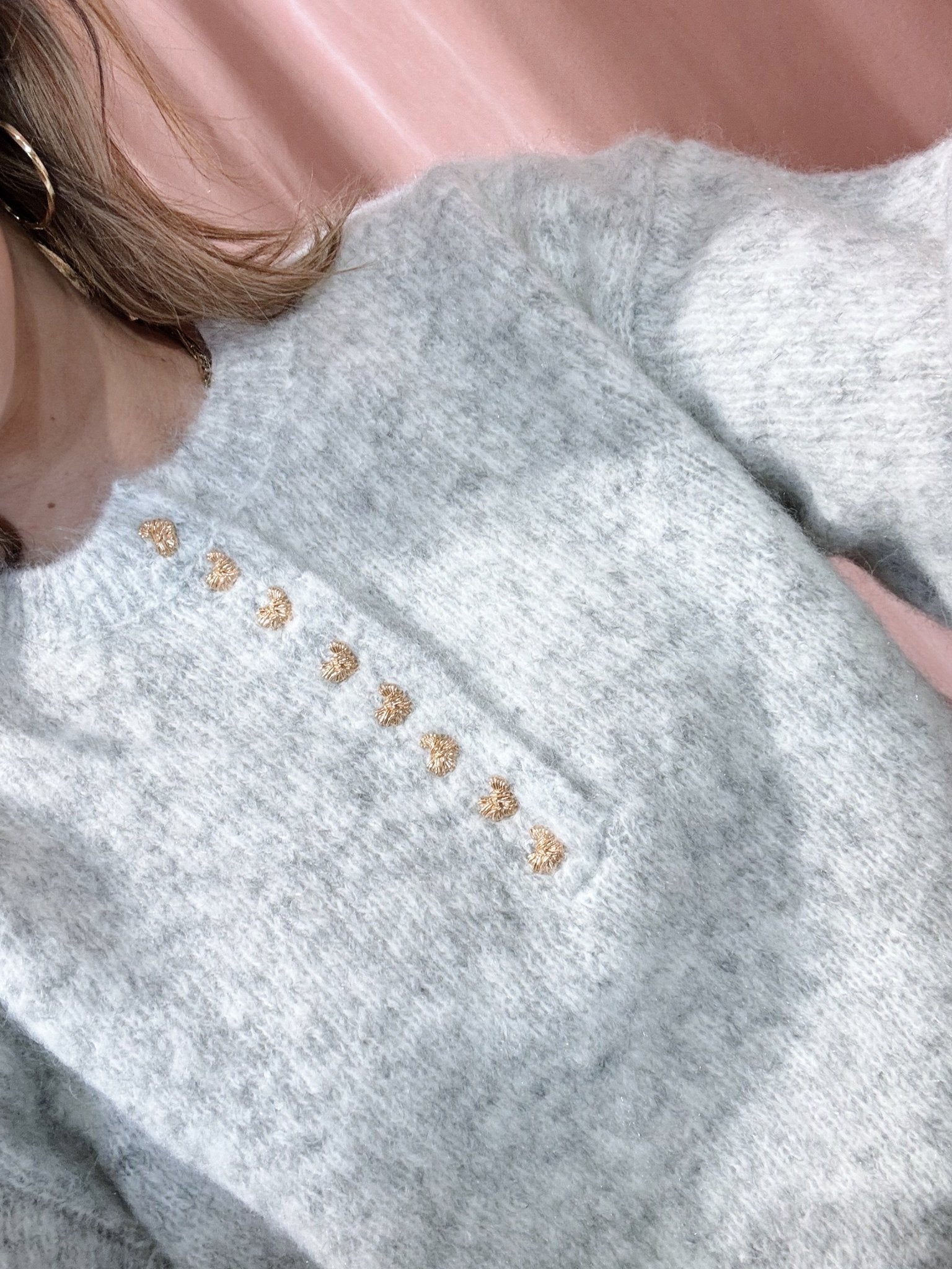 De Quitny Knit in roze is een knit met een boxy model. De trui is gemaakt van een heerlijk warm gebreid materiaal, heeft lange mouwen met een ronde halslijn en gouden hartjes knoopjes.