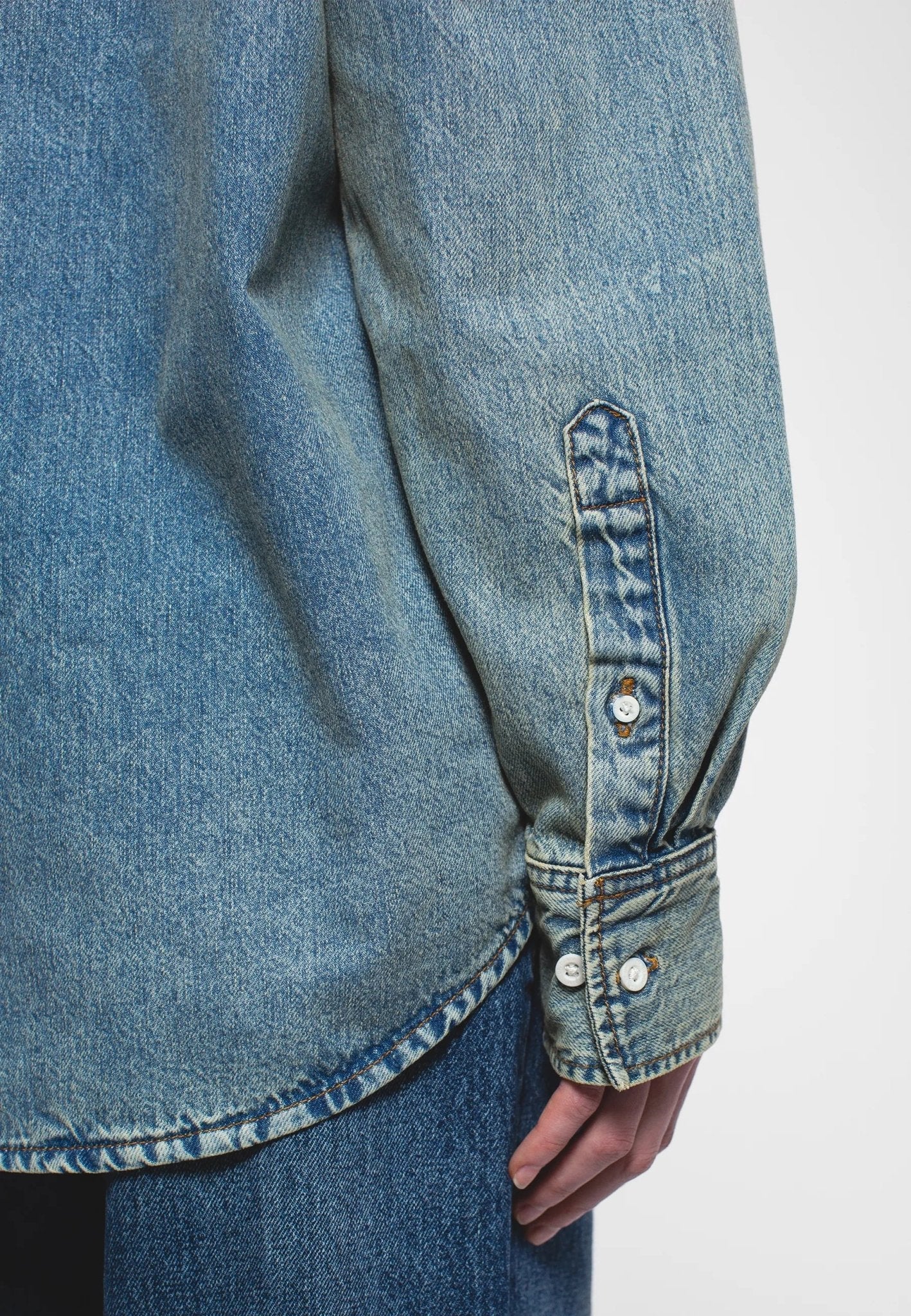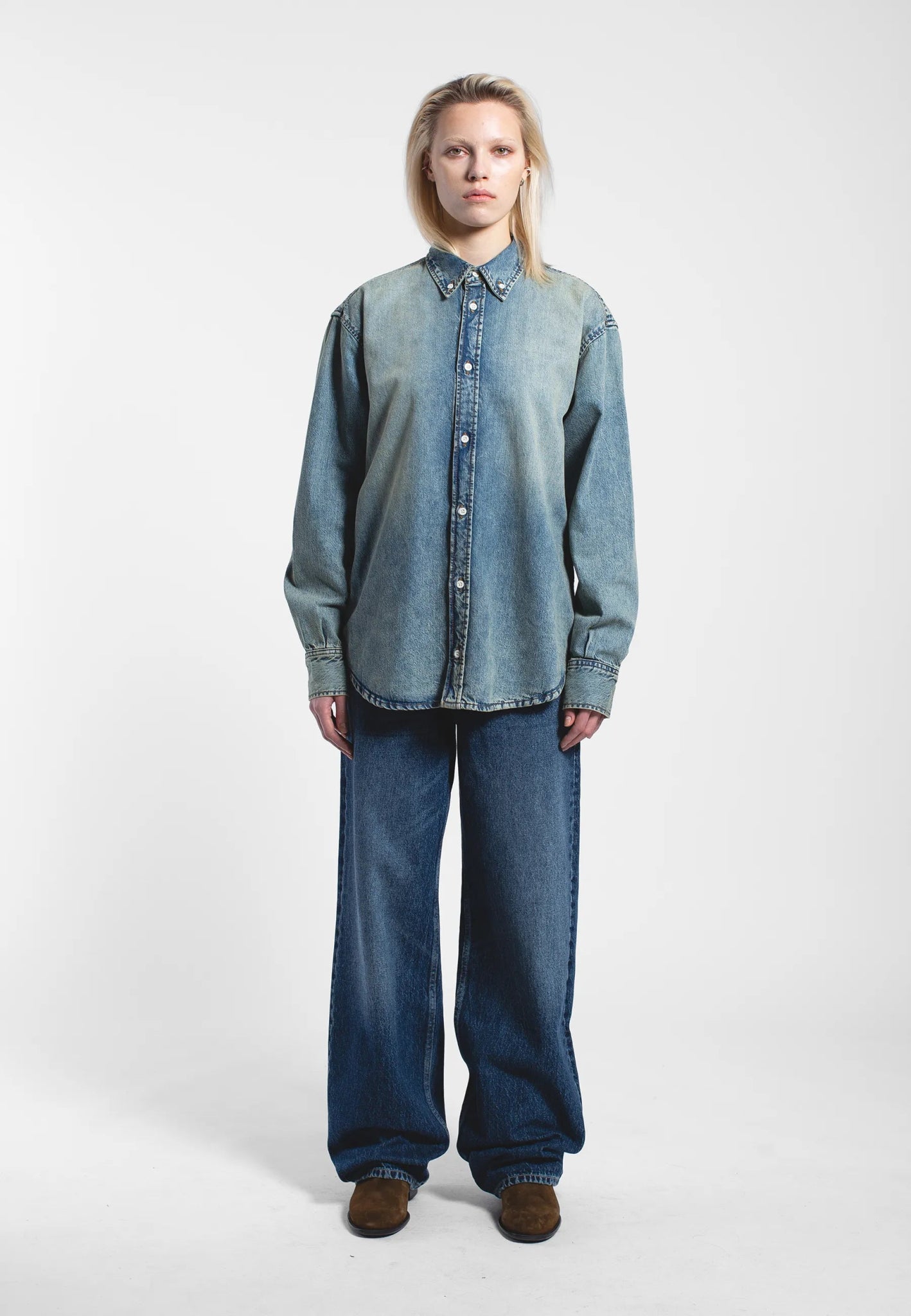 Deze denim blouse van Dr. Denim heeft een relaxed fit en een klassieke button down kraag. De blouse is gemaakt van stevig, niet-stretch denim en afgewerkt met een volledige knoopsluiting. Dankzij de rechte pasvorm en het 100% katoenen materiaal is dit een tijdloos item dat makkelijk te combineren is.