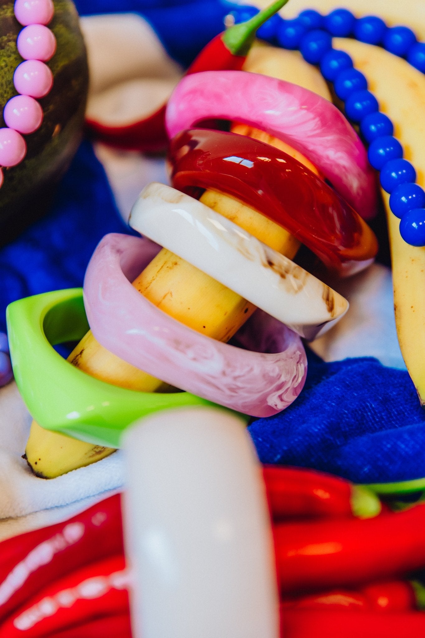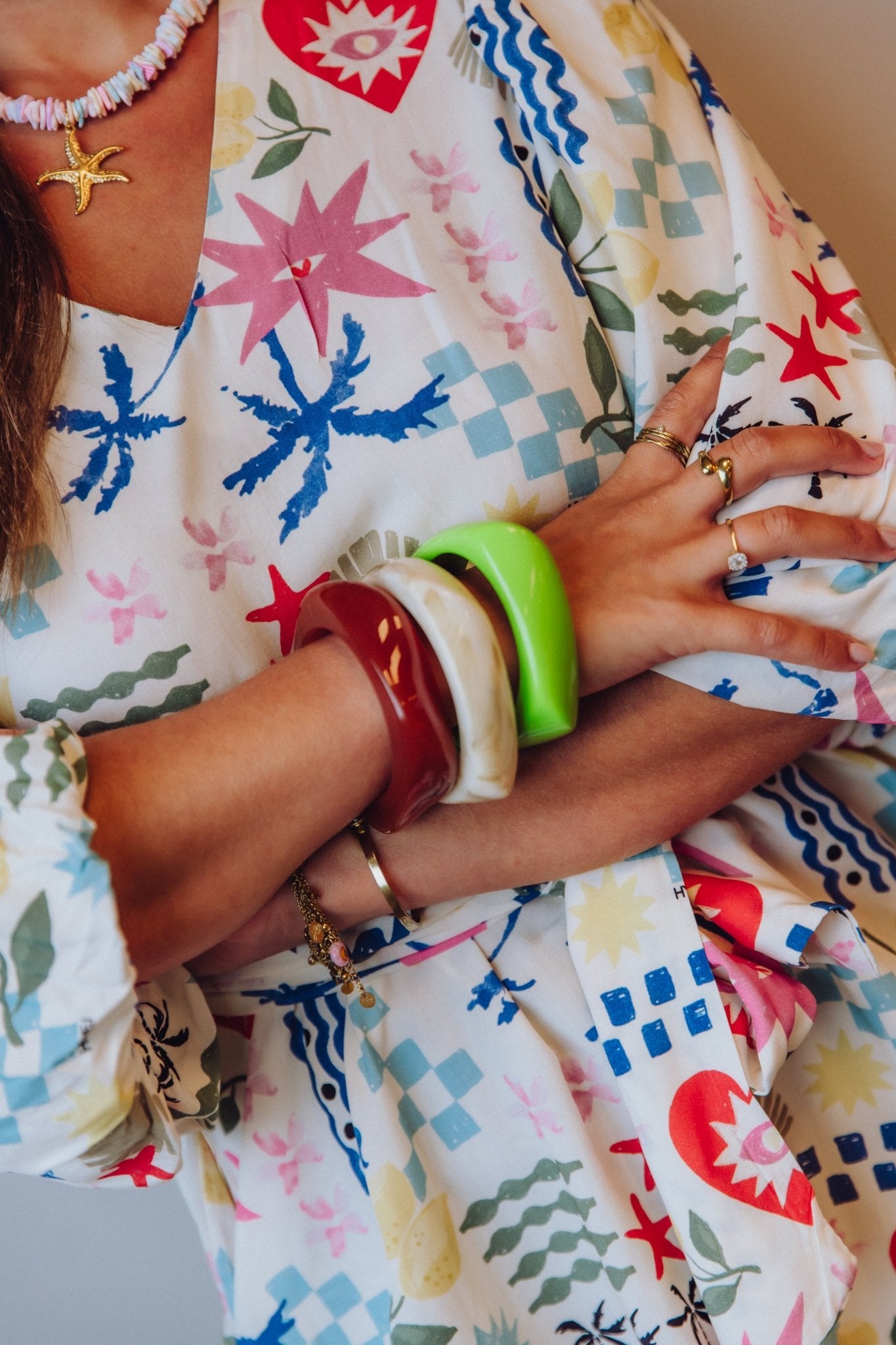 Deze té leuke resin armband is handgemaakt van acryl en heeft levendige kleuren met een glanzende afwerking. Deze armband is een leuke kleurrijke toevoeging aan jouw outfit!Straal: 8 cmDikte: 2,3 cm