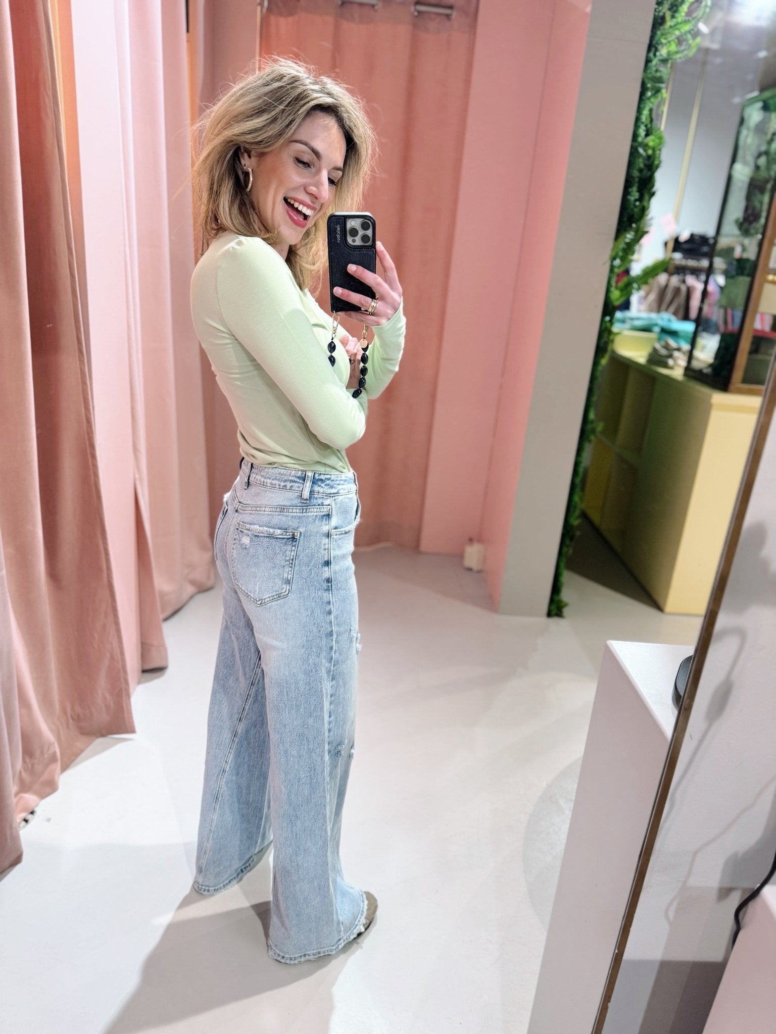 Jessica is 1,65m lang en draagt altijd maat S of S/M.