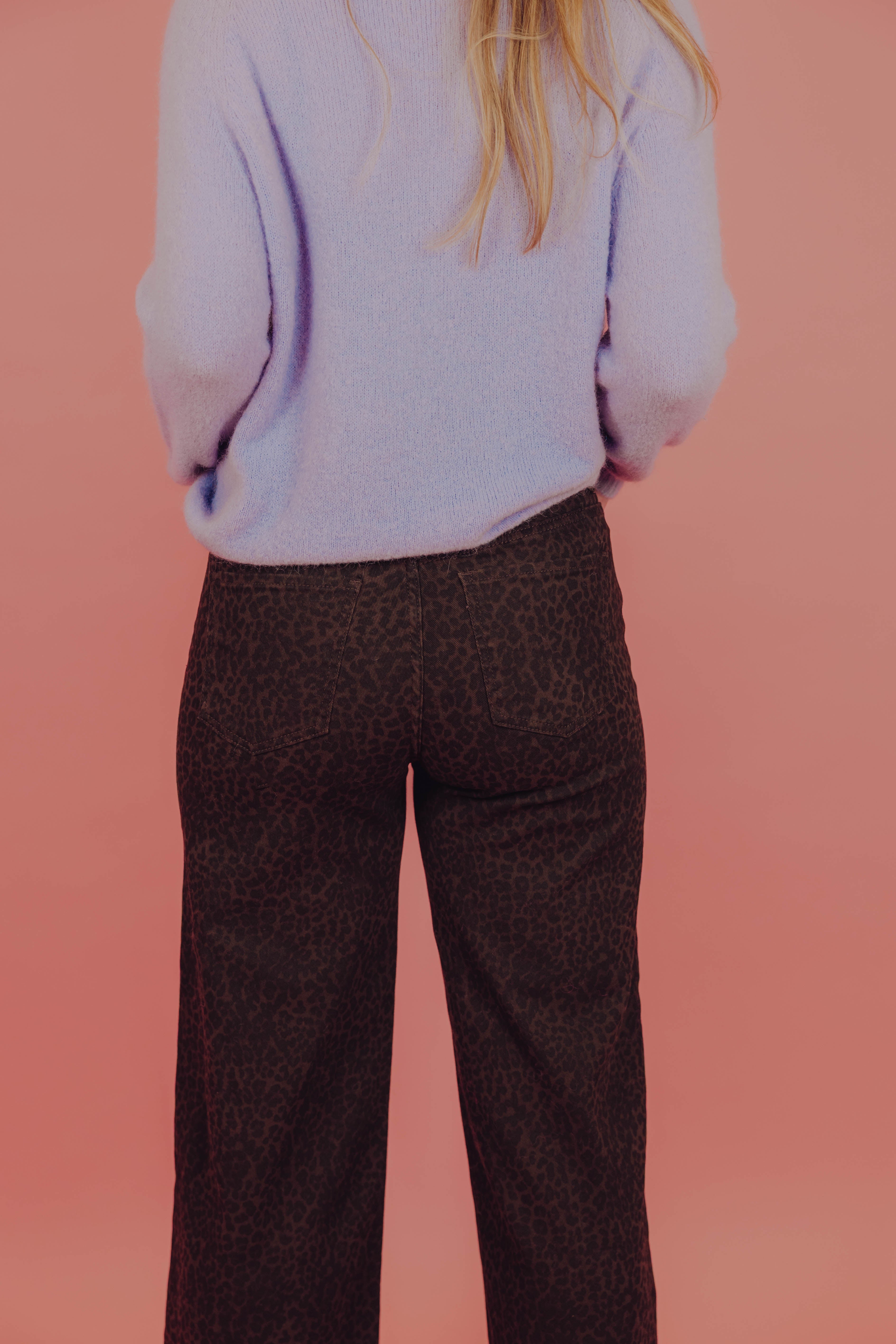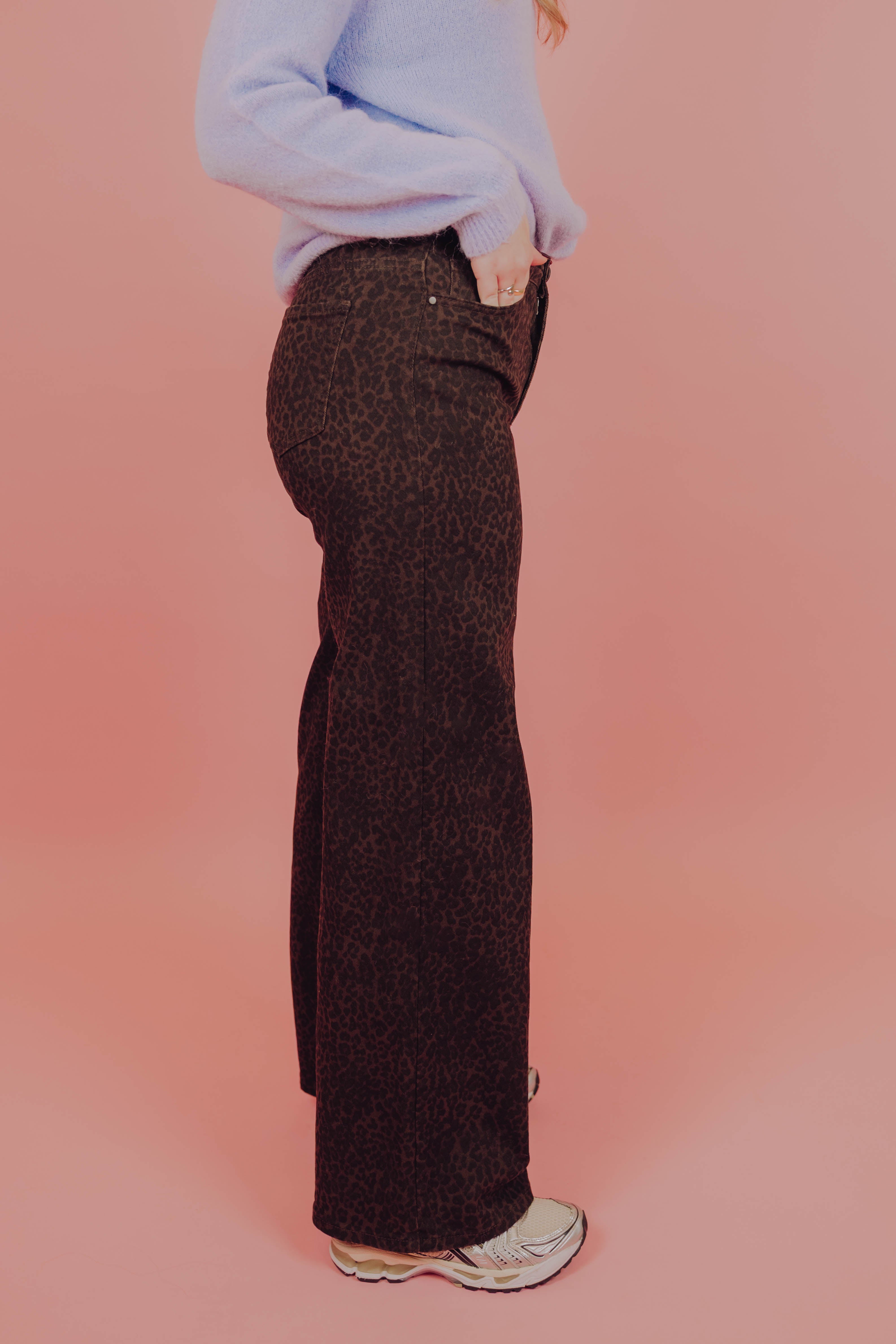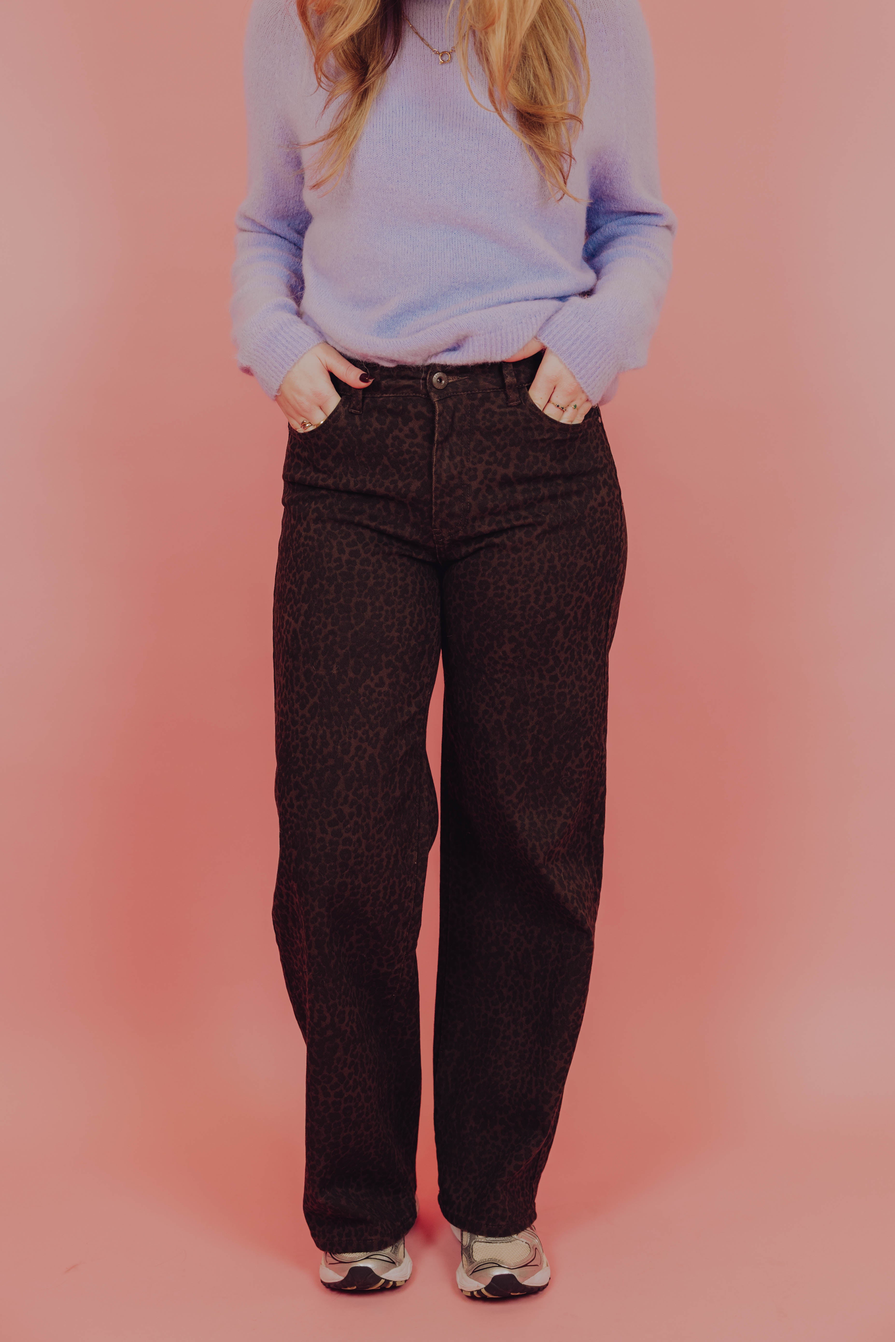Onze bestselling jeans in een nieuwe kleur! De perfecte donker bruine leopard-jeans in een extra lange lengte. Perfect voor de lange meiden, maar ook leuk te stijlen door 'm zo om te slaan. De broek heeft een goede mid-waist, fijne stretch maar is dus wel echt een 'jeans' dus heeft een stoere look.