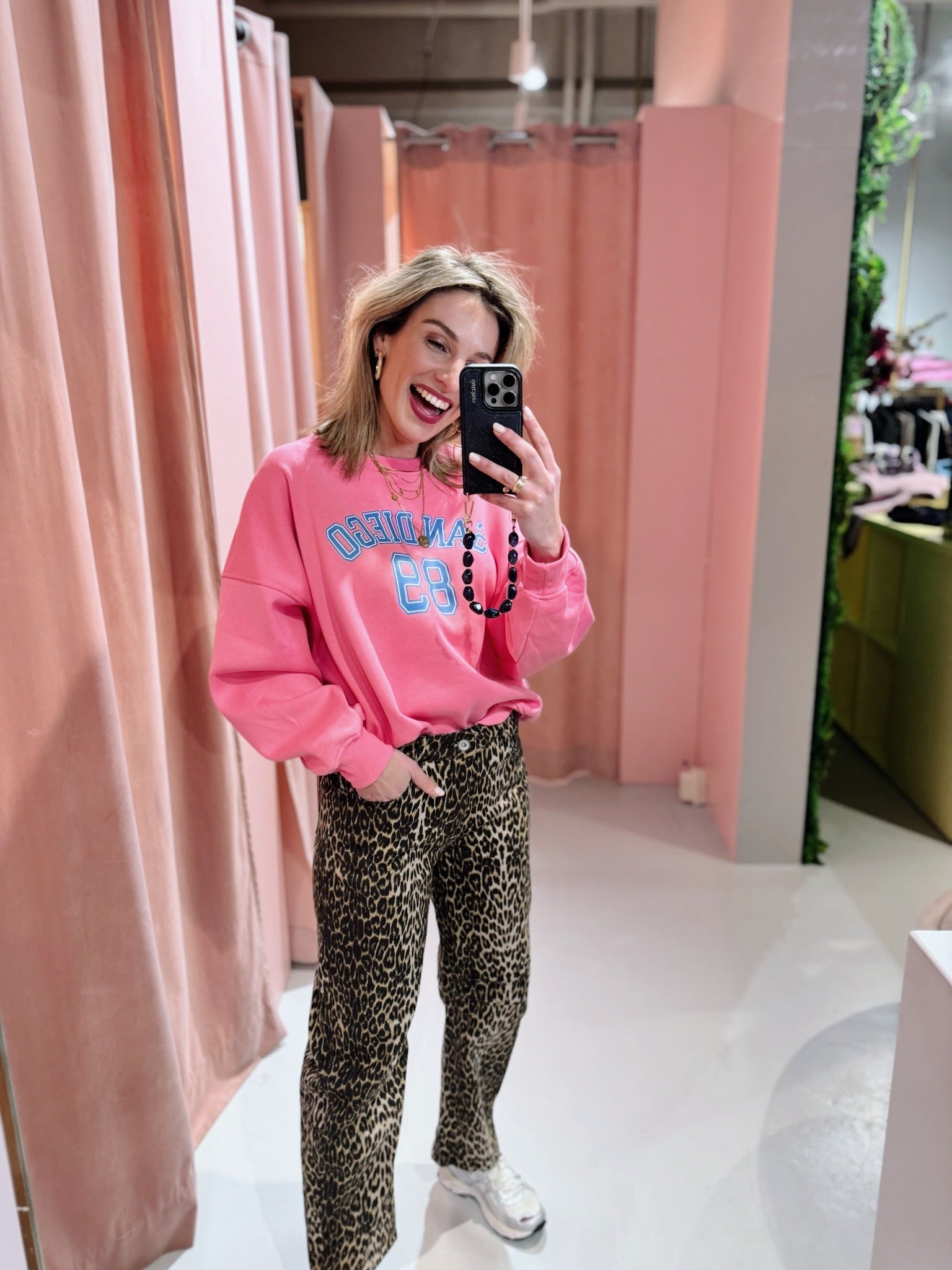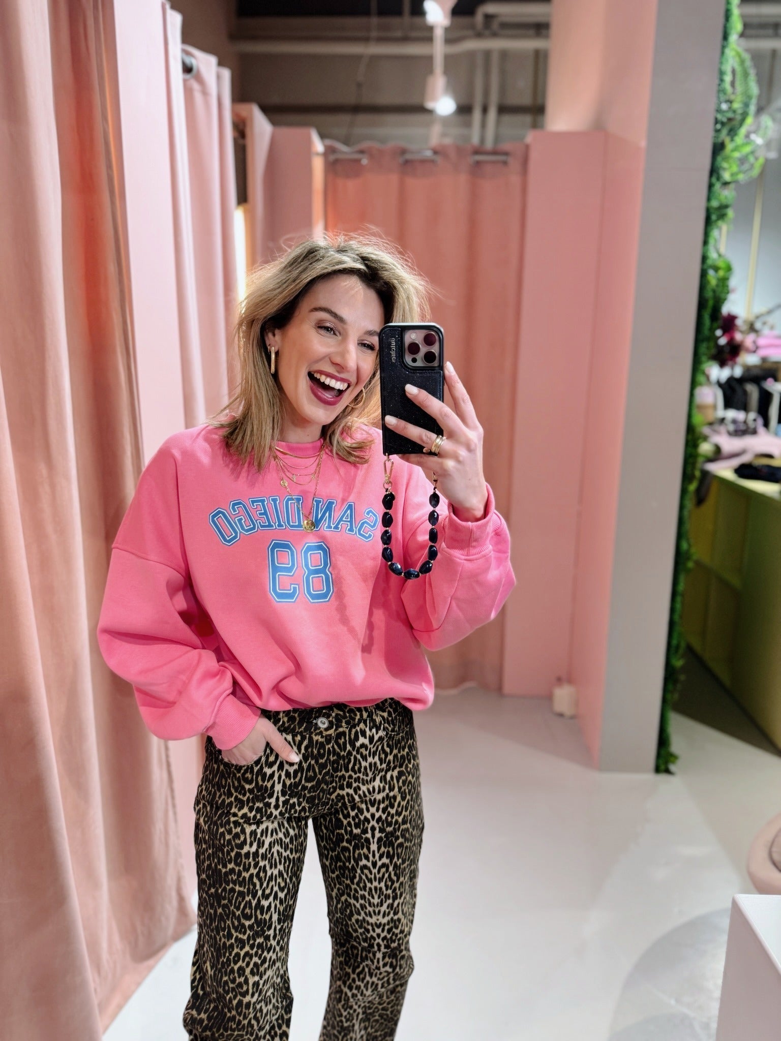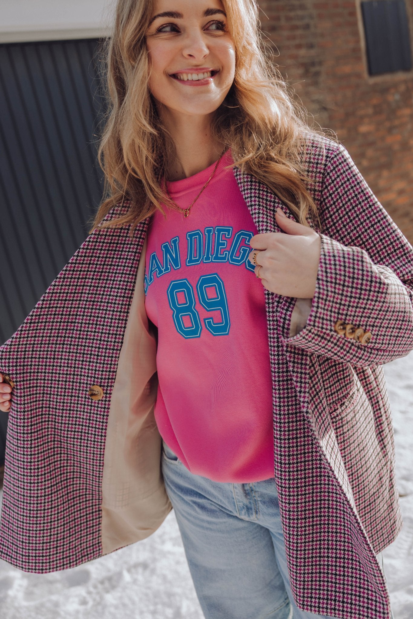 De San Diego Sweater in roze is een oversized trui met lange mouwen en een ronde halslijn. De trui heeft een losse pasvorm en is voorzien van een opdruk met de tekst "San Diego" op de borst. Doordat deze sweater voorzien is van een fleece binnenkant, is hij perfect voor de koude dagen!