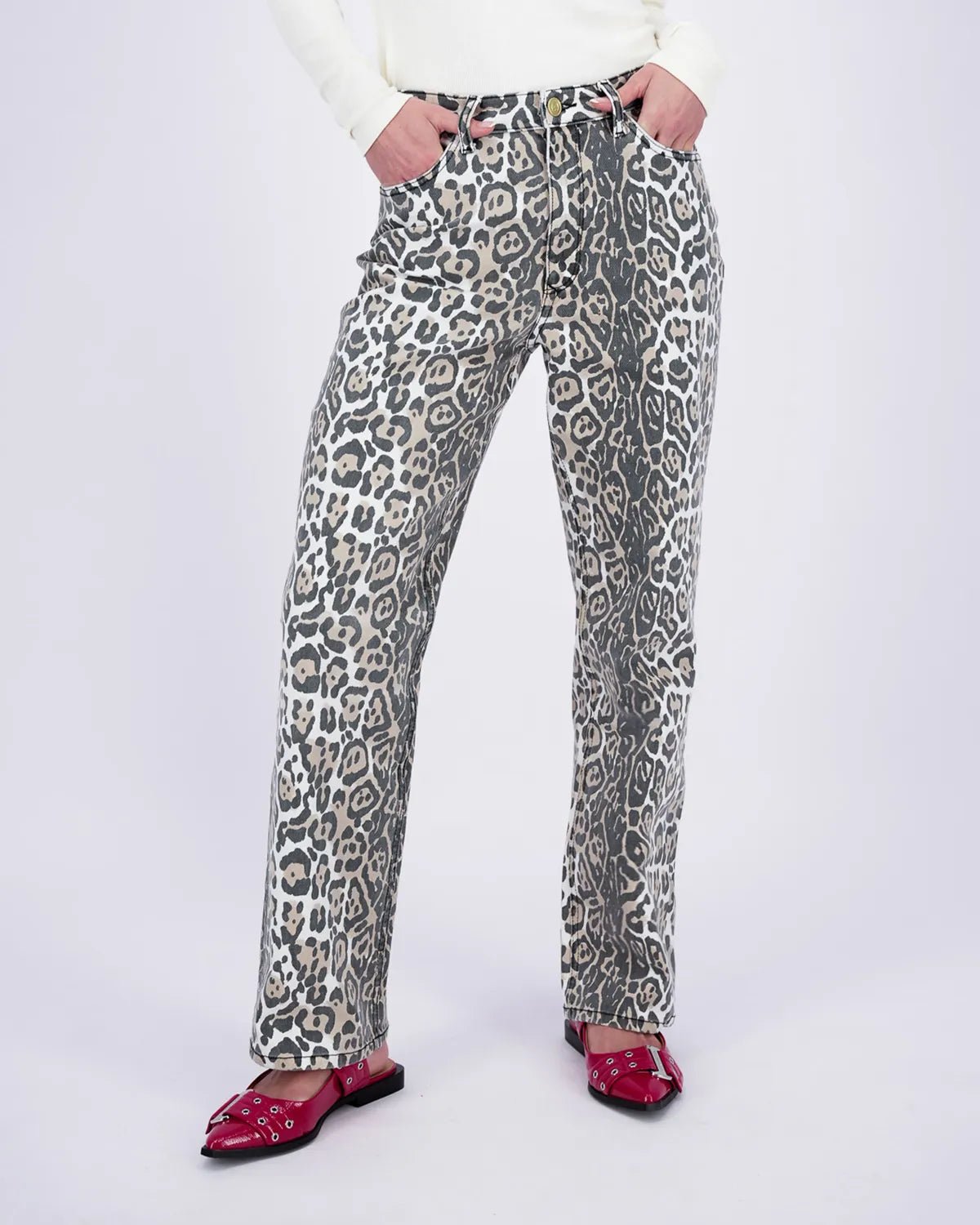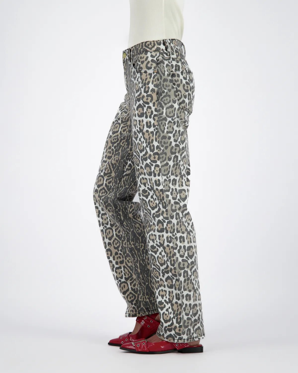 De Savanna Leopard Straight Jeans brengt jouw denim game naar een hoger niveau. Met de high waist en rechte pijpen zit hij niet alleen super comfortabel, maar geeft hij je look ook meteen een stoere twist. De all-over leopard print maakt van deze jeans een echte eyecatcher. Gemaakt van 100% katoen voor een stevige fit zonder stretch.