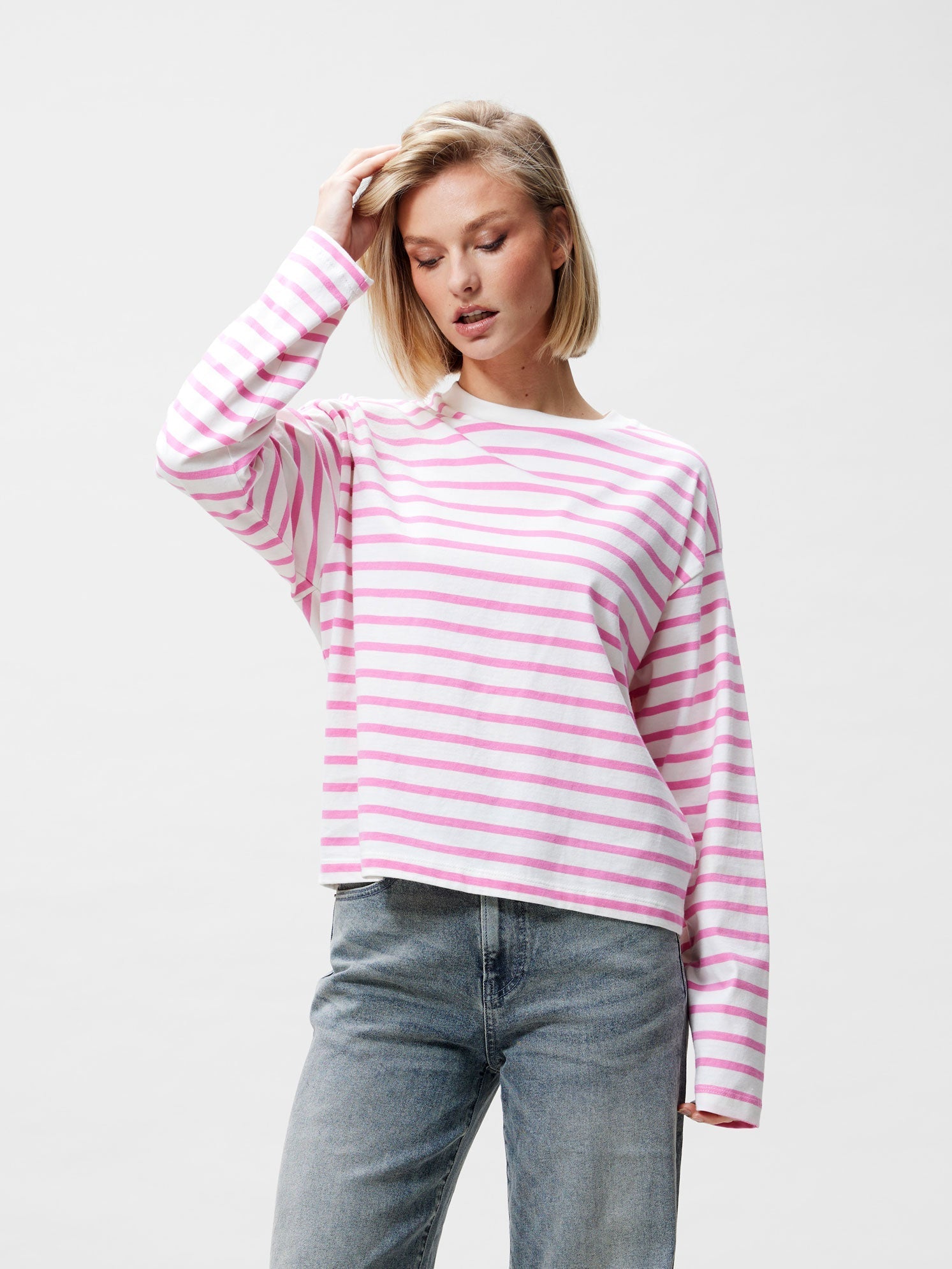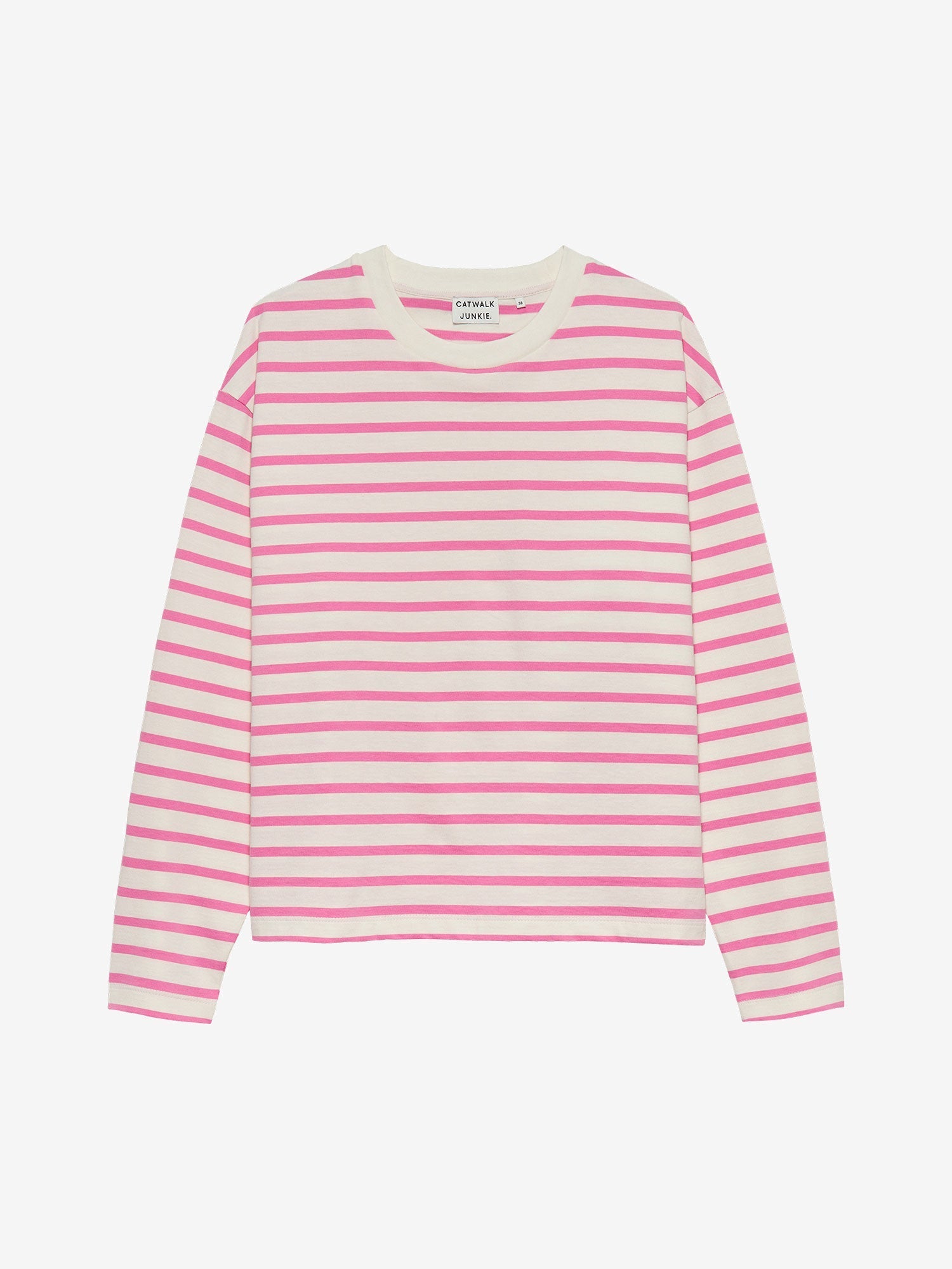 Deze striped longsleeve van Catwalk Junkie is een heerlijke basic die je gemakkelijk kunt combineren. De longsleeve is gemaakt van een fijne katoenen stof en heeft een oversized model. Draag deze top met een jeans voor een casual look.