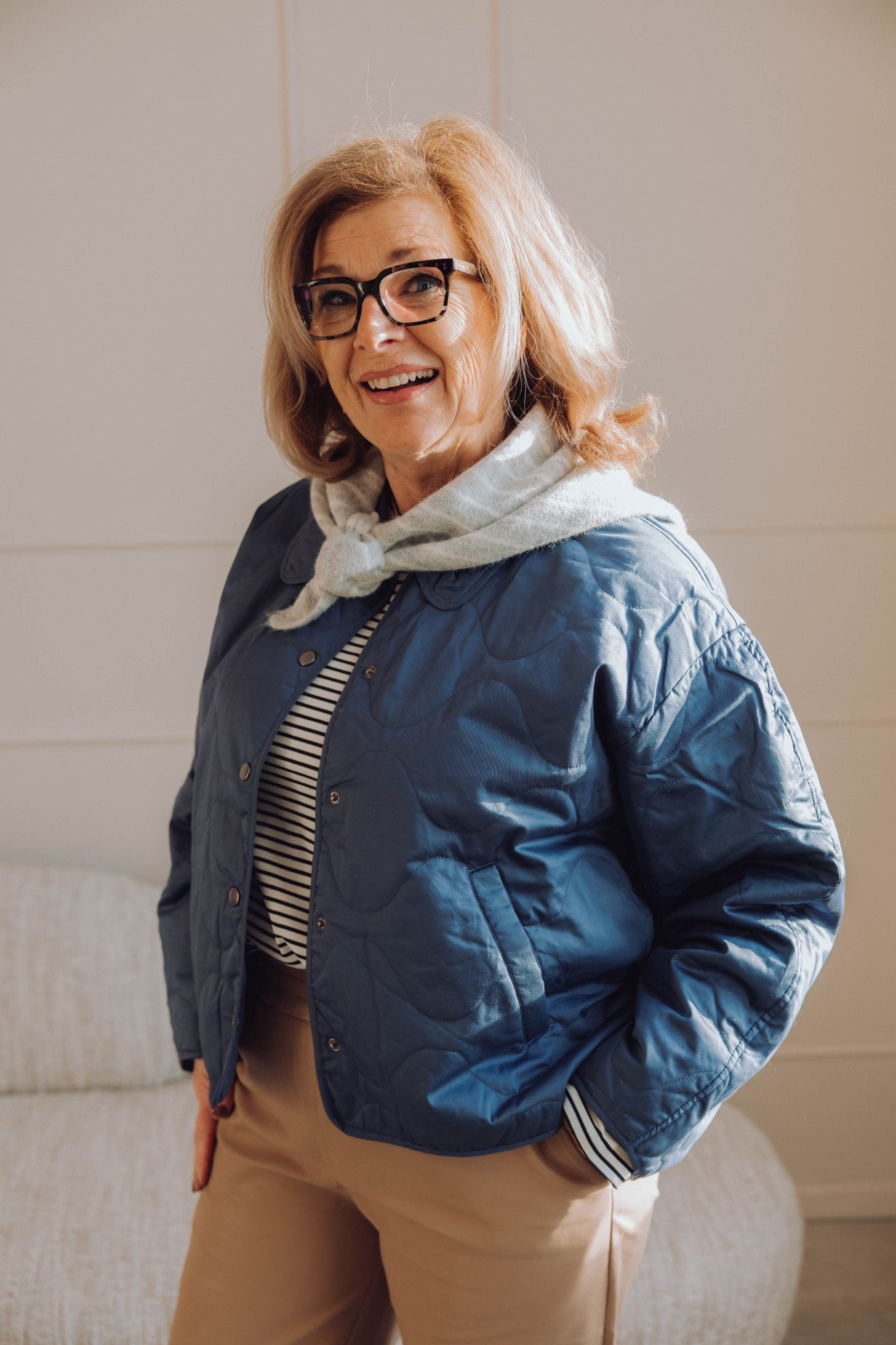 De Striped Triangle Scarf in grey melange is je nieuwe favoriet voor koude dagen. Het gestreepte sjaaltje voelt zacht en warm aan, zonder zwaar te zijn. Het driehoekige design maakt hem makkelijk te knopen en geeft elke outfit een warme touch.