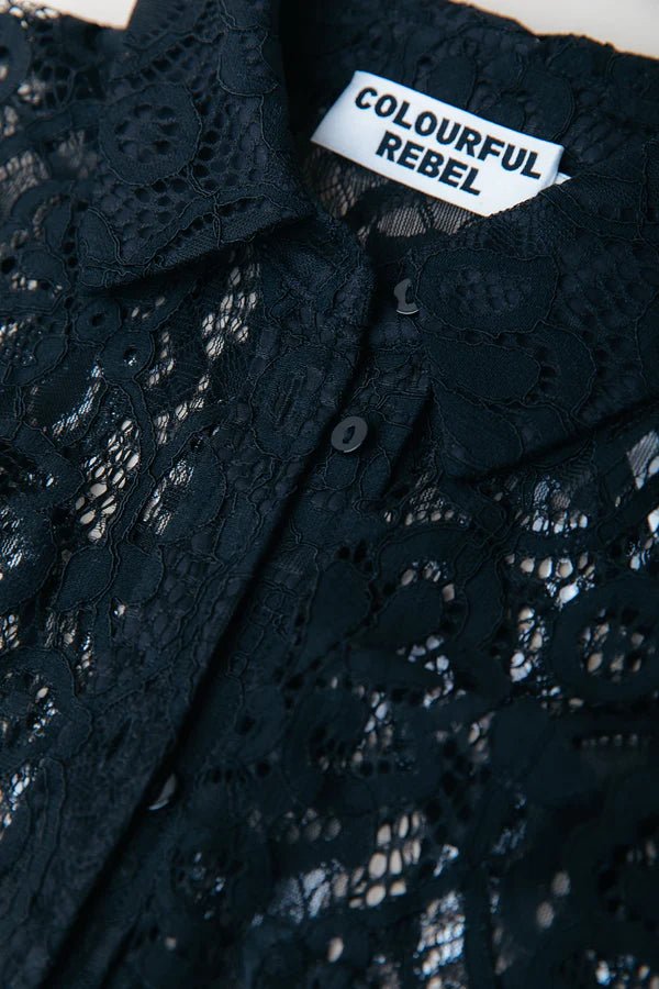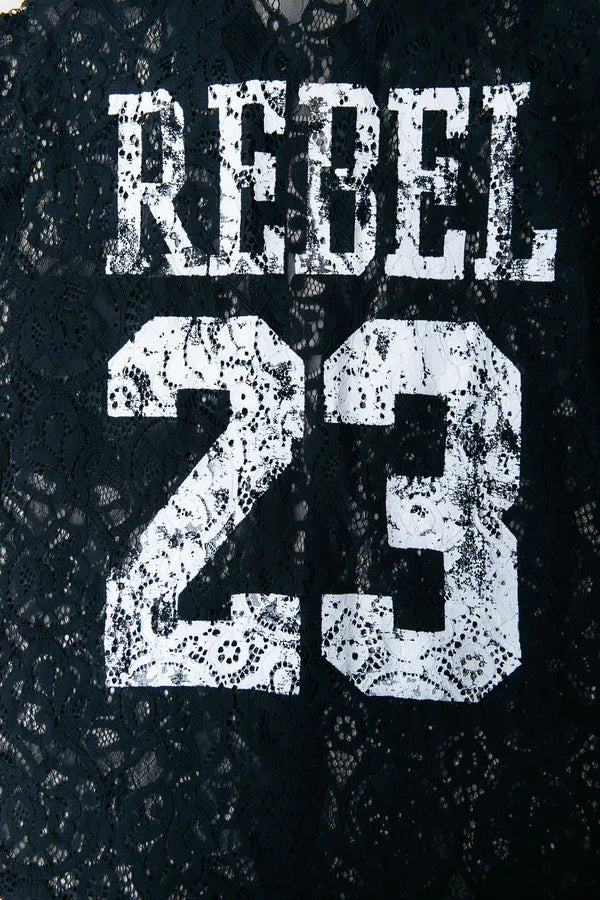 De Talia Rebel 23 Lace Blouse in zwart is gemaakt van een kanten stof. De blouse heeft een regular fit en is voorzien van borstzakken en een knoopsluiting aan de voorkant. Het kant geeft de blouse een vrouwelijke en stijlvolle uitstraling, terwijl de print op de achterkant met “REBEL 23” zorgt voor een stoere twist. Perfect te combineren met een jeans of leren broek voor een edgy look.