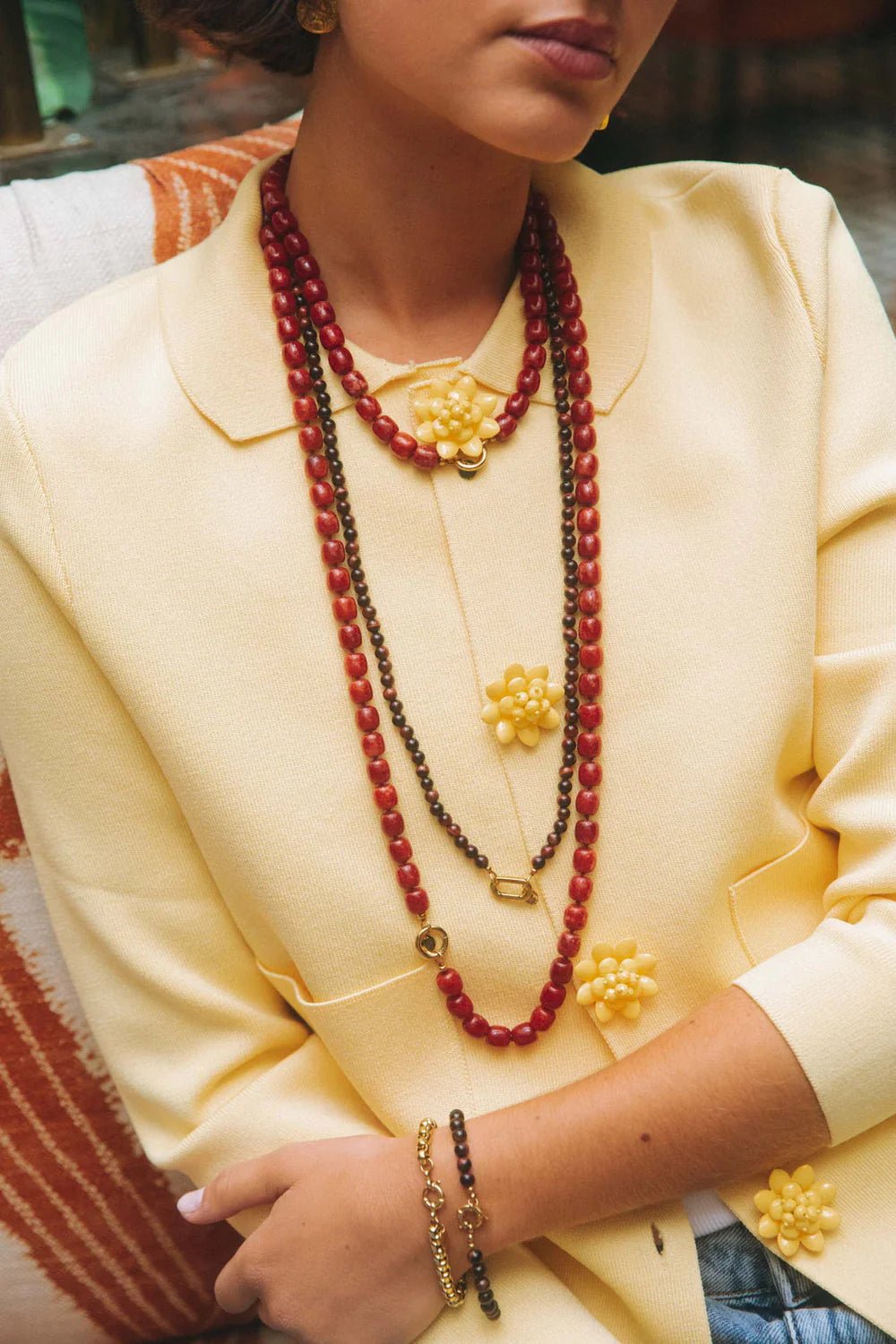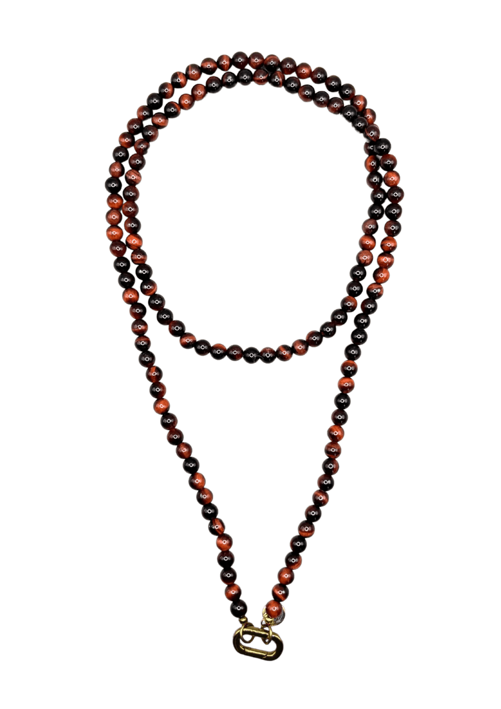 Deze ketting is handgemaakt van jade kralen en heeft een glanzende afwerking. De sluiting is gemaakt van roestvrij staal en 14K verguld.
