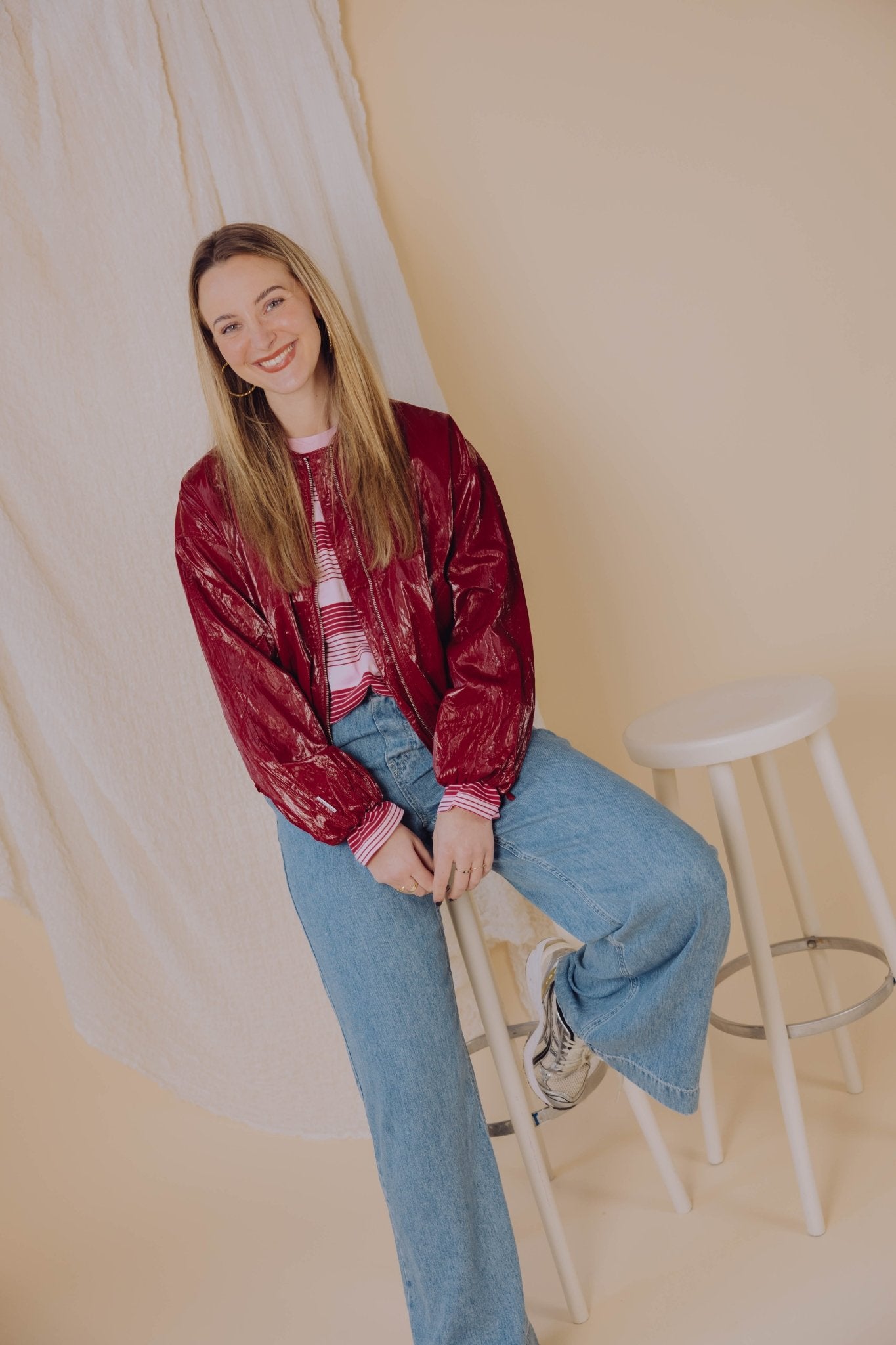 Deze jas heeft een opvallende glanzende afwerking en een elastische zoom aan de onderzijde. De elastische afwerking zorgt ervoor dat de jas licht naar binnen valt, waardoor hij mooi aansluit zonder strak te zitten. Dit geeft het model een nette en verzorgde uitstraling. De jas sluit met een rits aan de voorkant en heeft lange mouwen. Door de gladde buitenstof voelt hij licht aan en is hij prettig draagbaar.