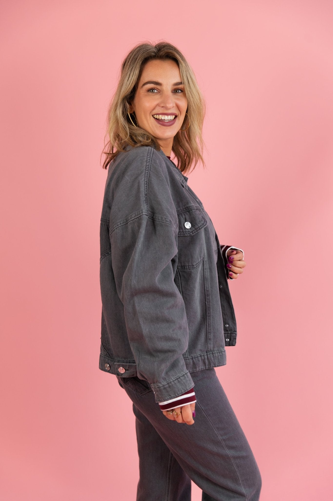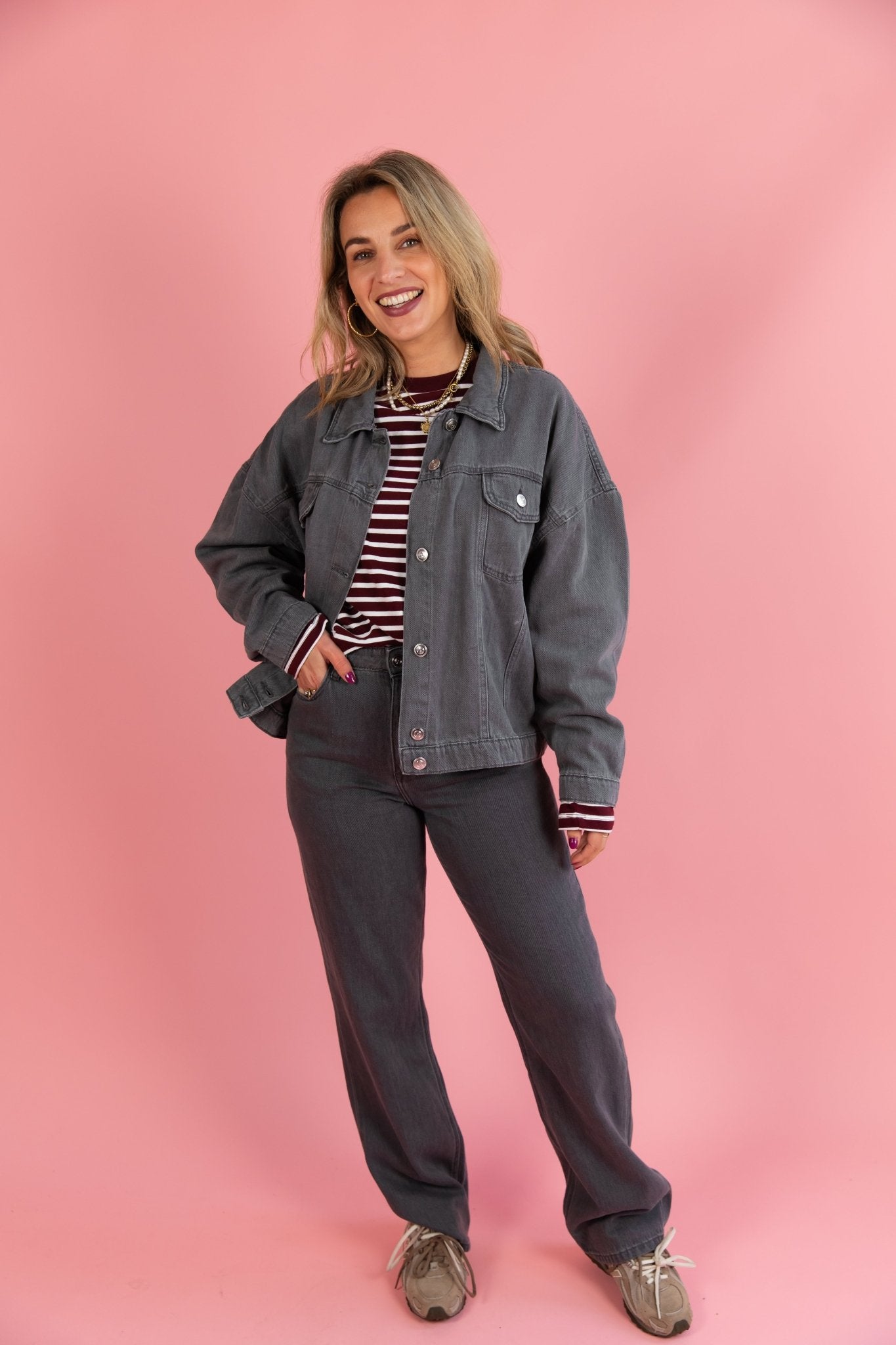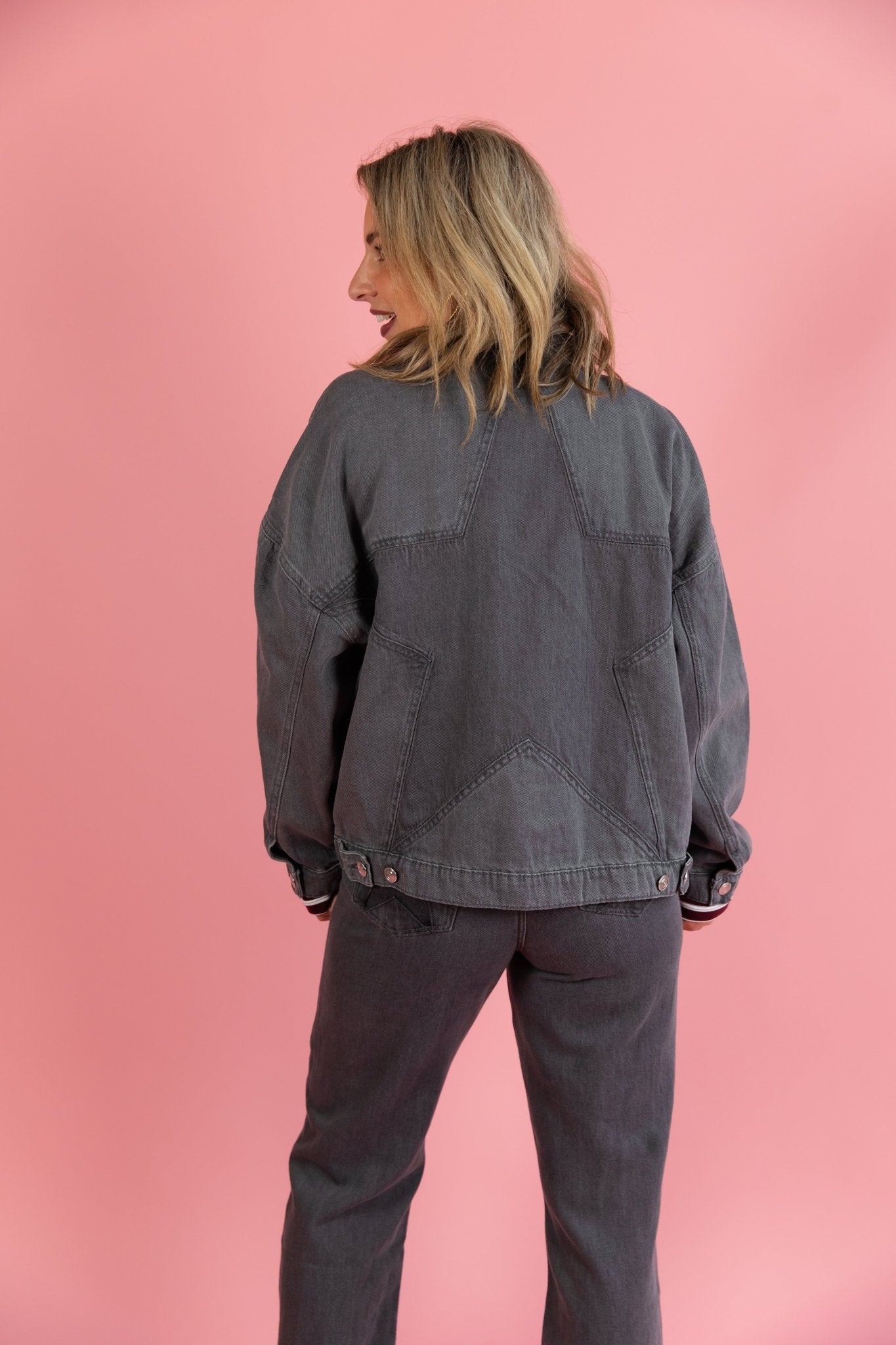 De Veronica Star Denim Jacket tilt je look direct naar een hoger niveau. Deze baggy fit jacket is gemaakt van stevig katoen en heeft een washed black tint voor een casual look. Aan de achterkant heeft het jasje een grote ster. Met de klassieke knoopsluiting en lange mouwen is dit dé jas voor al je everyday looks.