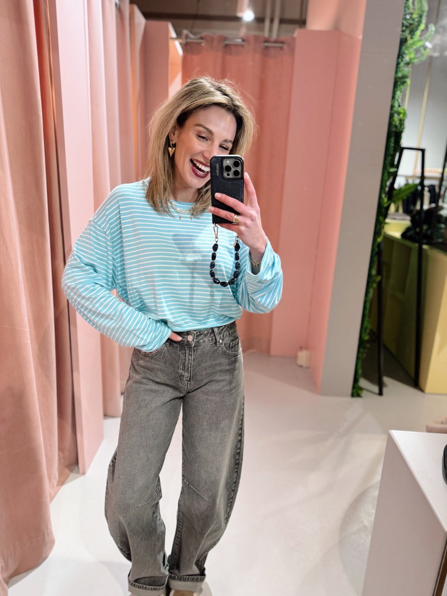 Jessica is 1,65m lang en draagt altijd maat S of S/M.