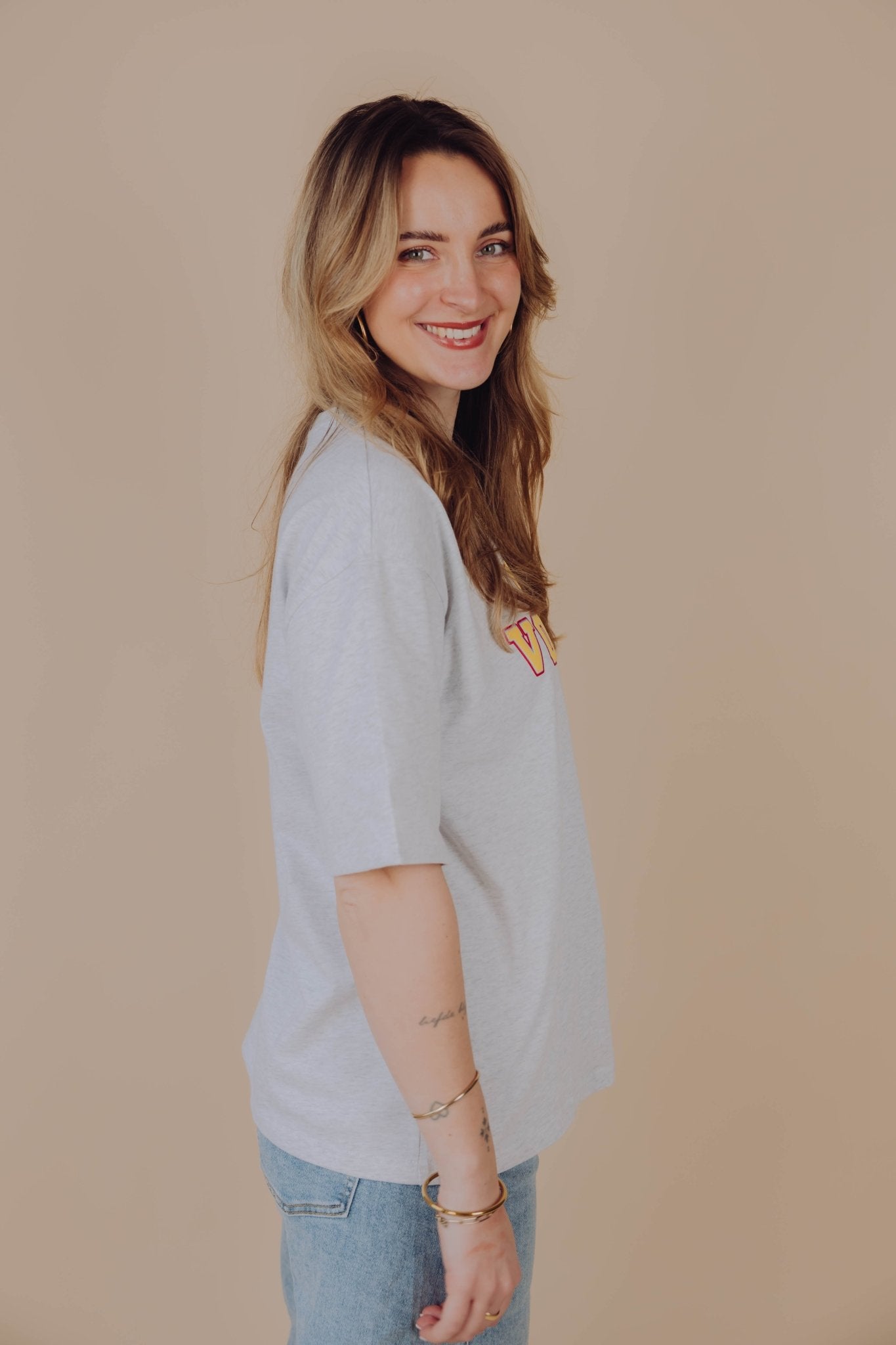 Dit T-shirt heeft een oversized pasvorm en is een fijne basic met een speels detail. Het model heeft korte mouwen en een ronde hals, waardoor het shirt comfortabel en makkelijk te dragen is.