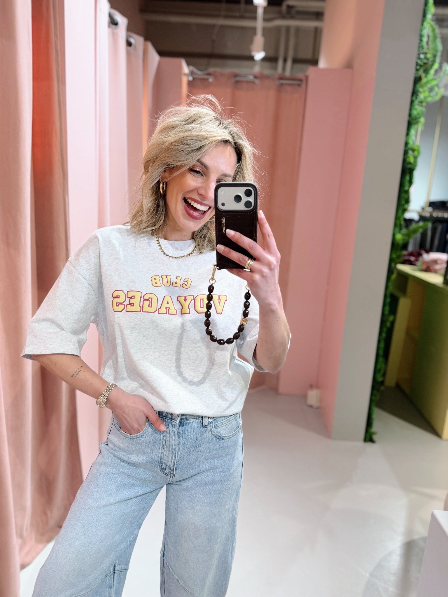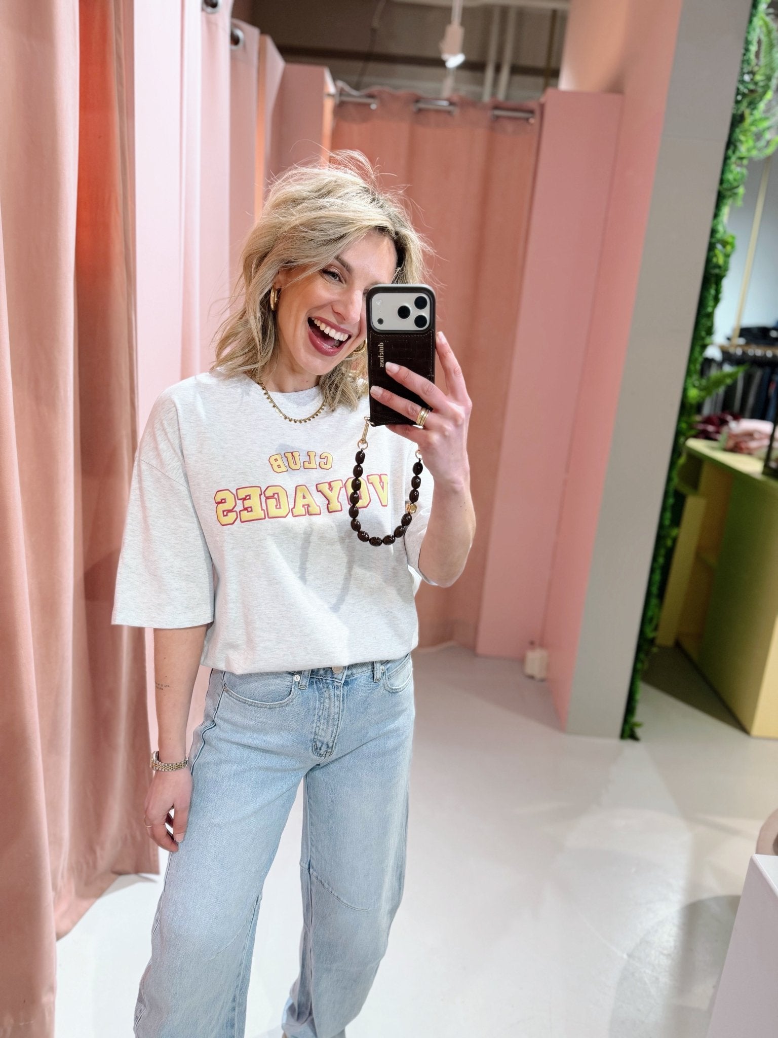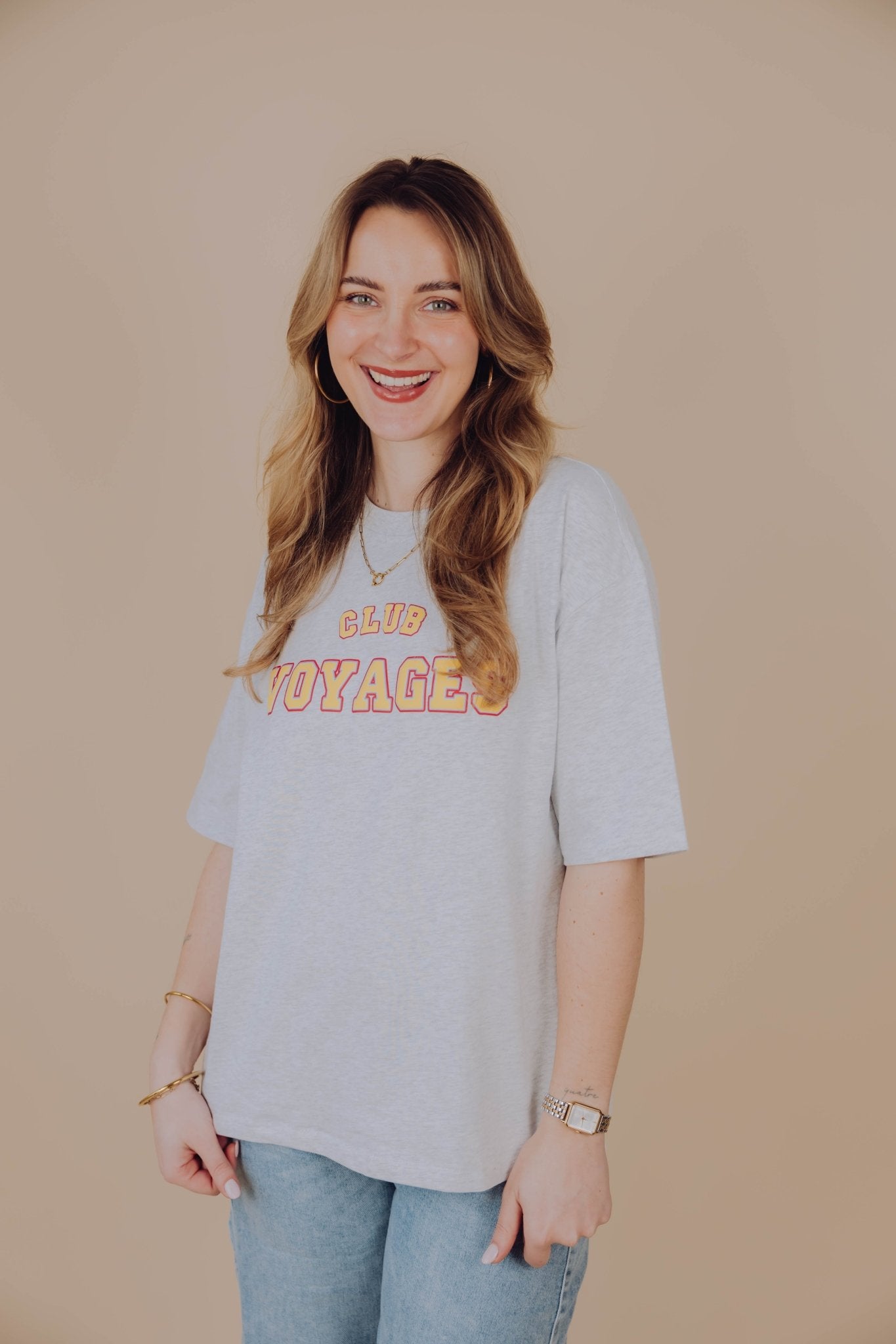 Op de voorkant staat de opdruk “Club Voyage”, wat het T-shirt een kleurrijke touch geeft. Perfect om casual te combineren met een jeans, short of rok.