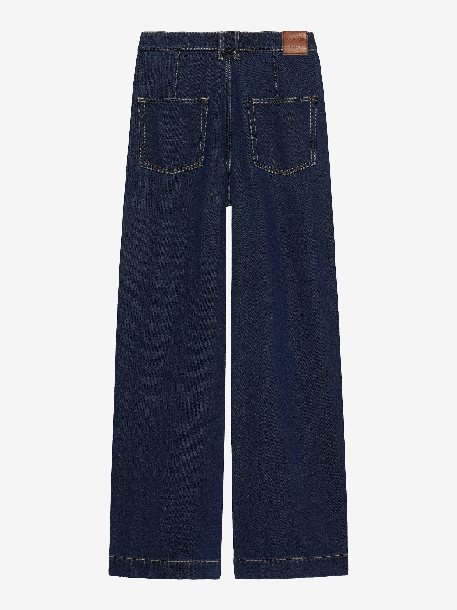 Deze wide leg jeans van Catwalk Junkie heeft een klassiek 5-pocket design met rits- en knoopsluiting. Het model heeft een full length en heeft een rechte, wijde pijp die zorgt voor een stoere uitstraling. De jeans is gemaakt van een zachte katoen-lyocellmix die stevig aanvoelt maar toch comfortabel draagt. De donkerblauwe wassing en contrasterende stiksels geven de broek een klassieke uitstraling die makkelijk te combineren is.