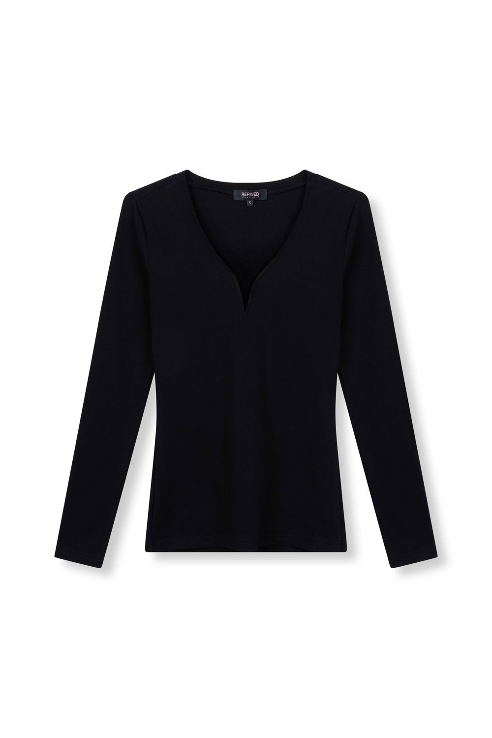 De Zohra Longsleeve in zwart van Refined Department is een aangesloten longsleeve met een elegante diepe V-hals die wordt onderbroken door een subtiele inkeping. De zachte, stretchy stof vormt mooi naar het lichaam en maakt deze top perfect voor zowel een casual als avondlook. Combineer met een leren broek of een rok voor een tijdloze, stijlvolle outfit.